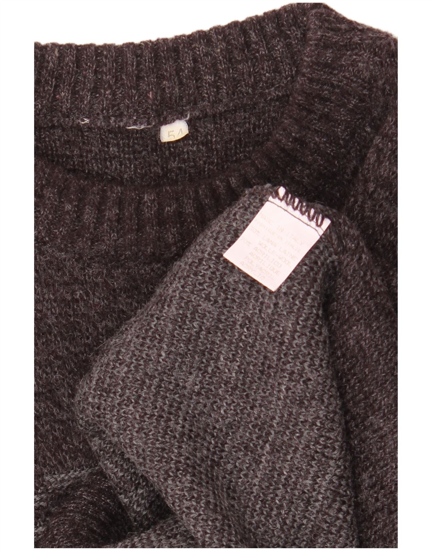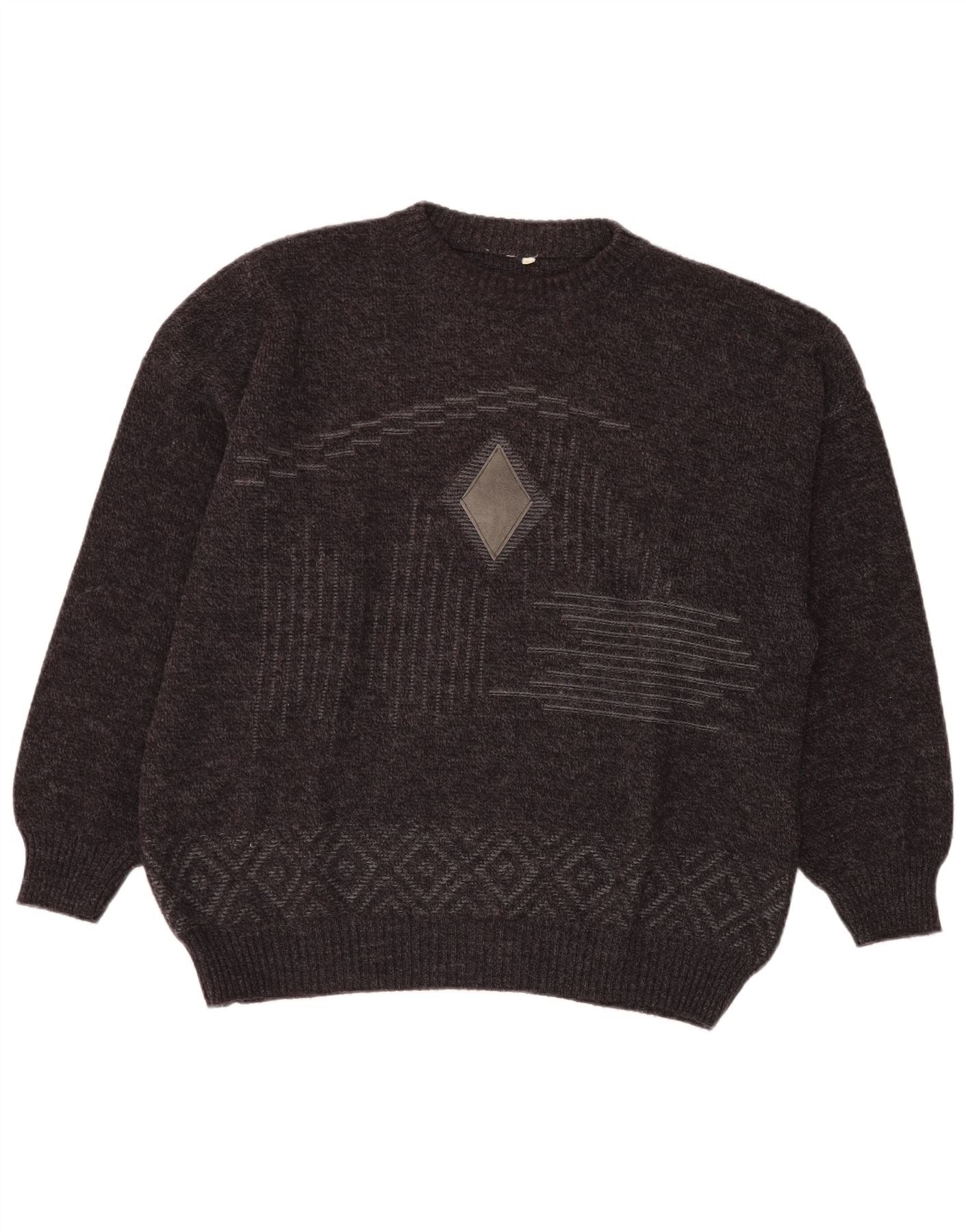 Męski sweter z okrągłym dekoltem VINTAGE IT 54 XL Szary Fair Isle Wool