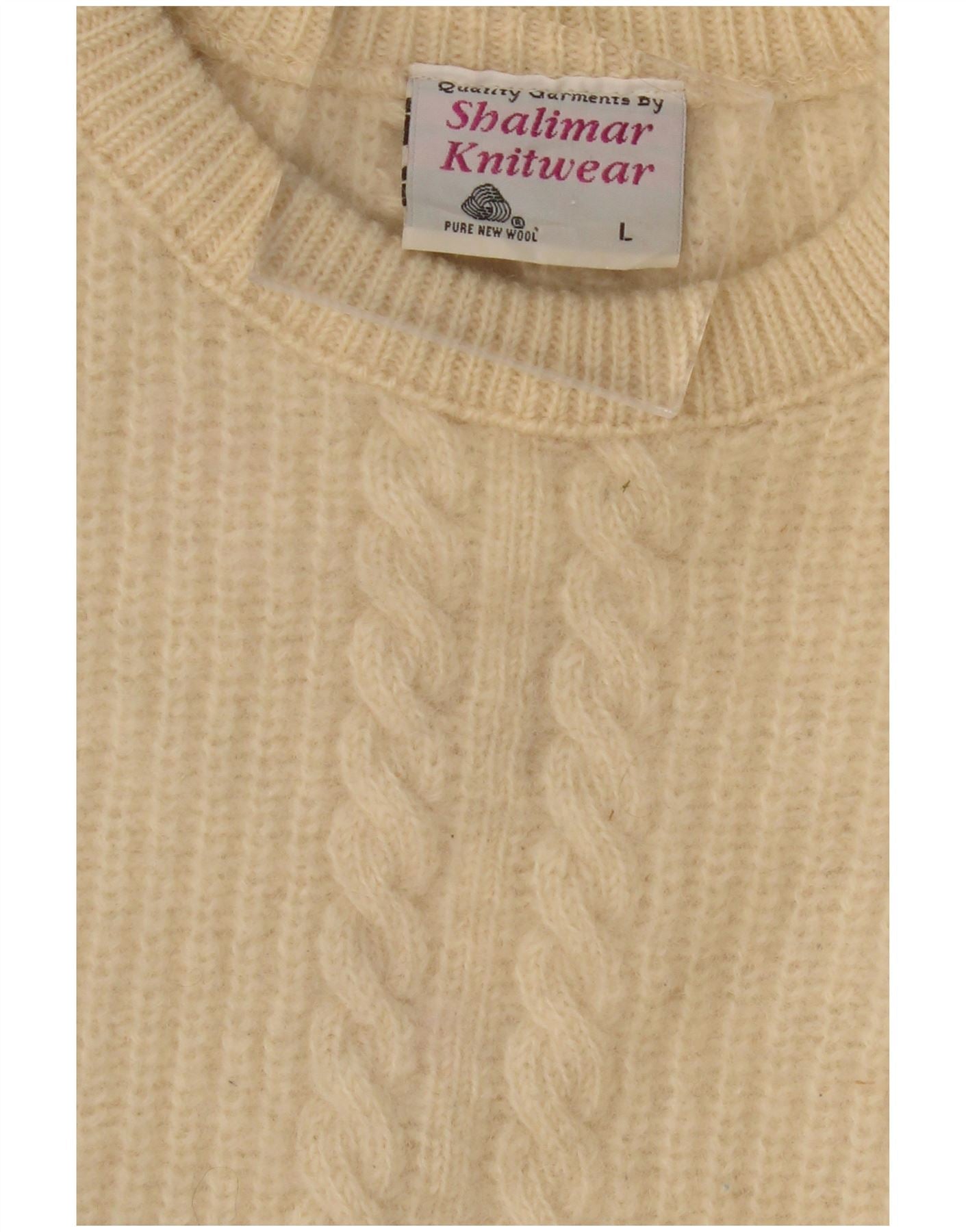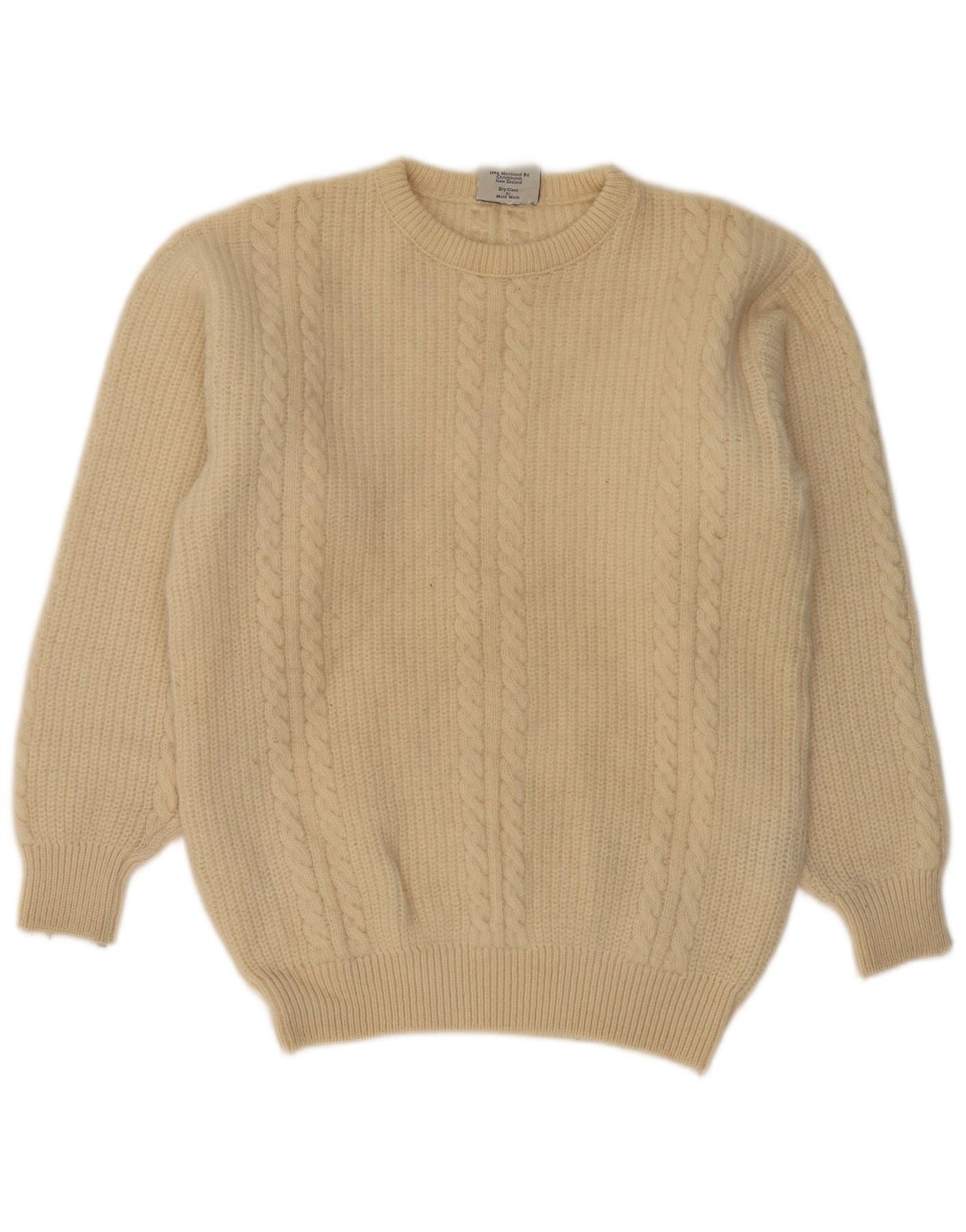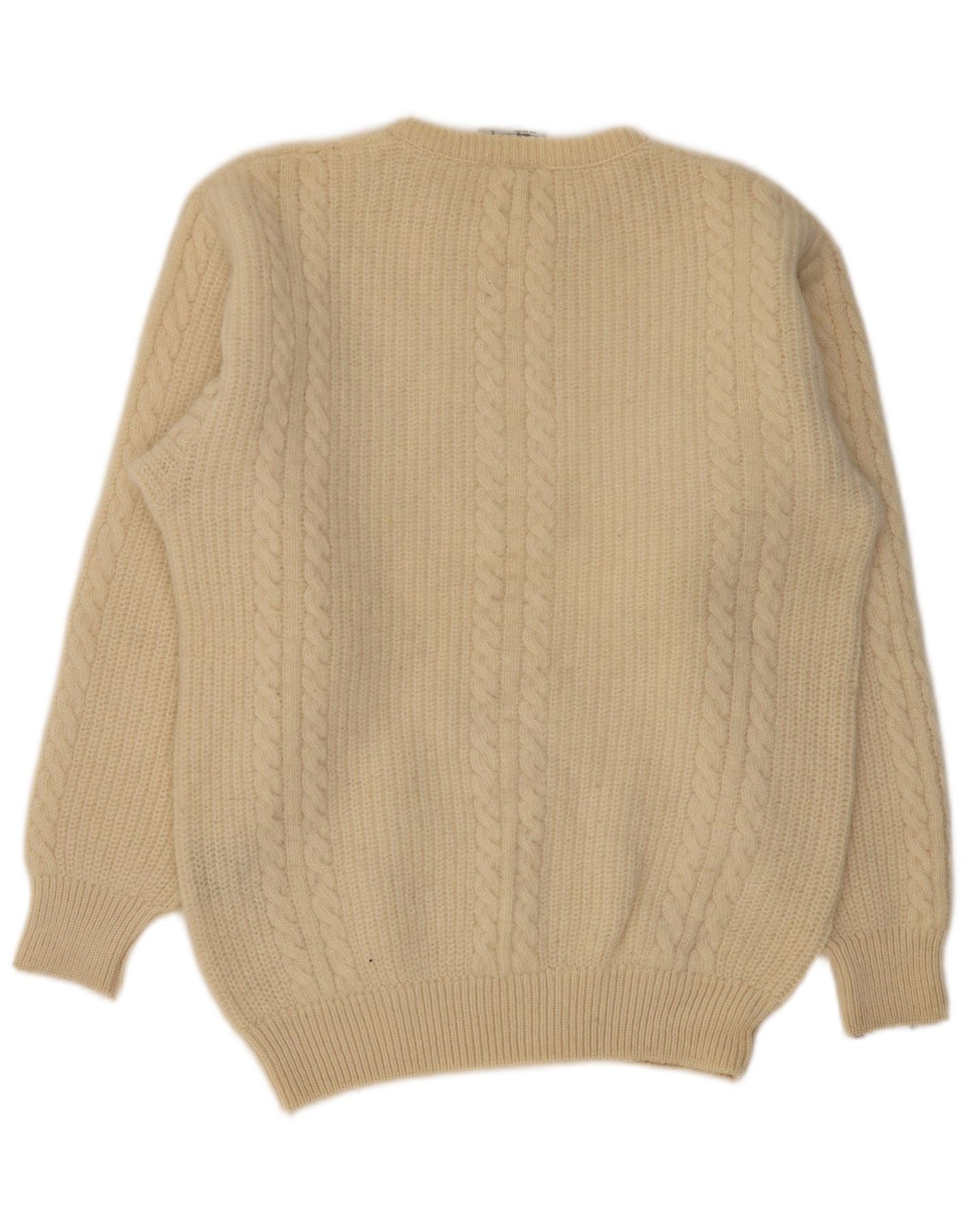Męski sweter z okrągłym dekoltem w stylu VINTAGE, duży, beżowy, nowa wełna