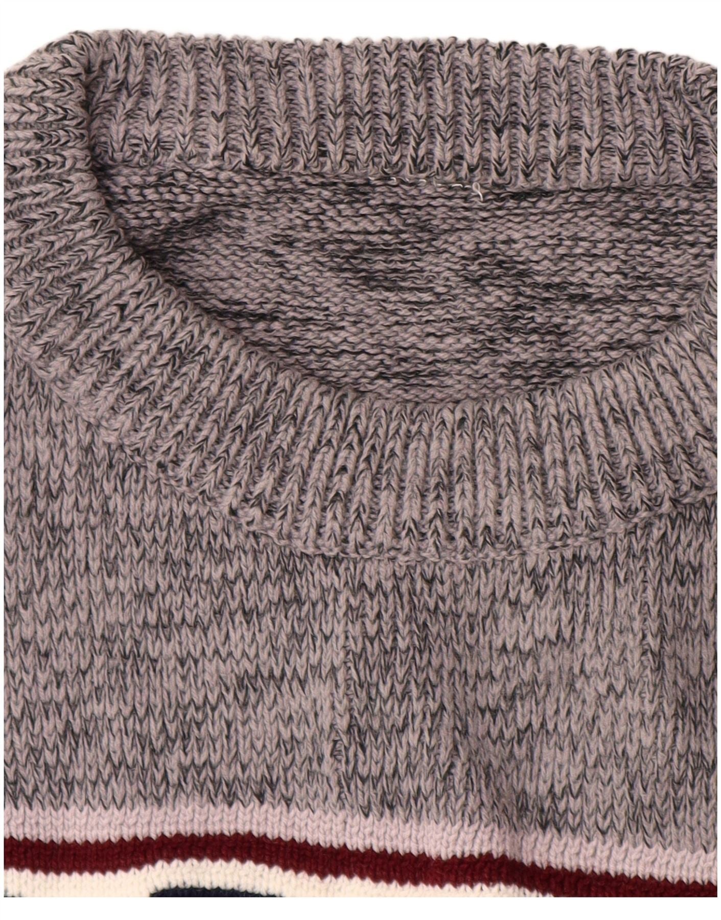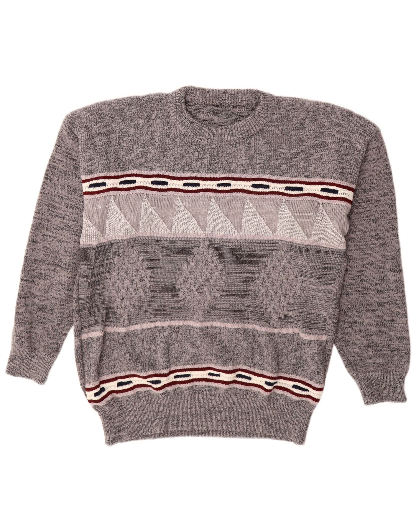 Męski sweter z okrągłym dekoltem w stylu VINTAGE, duży, szary, geometryczny