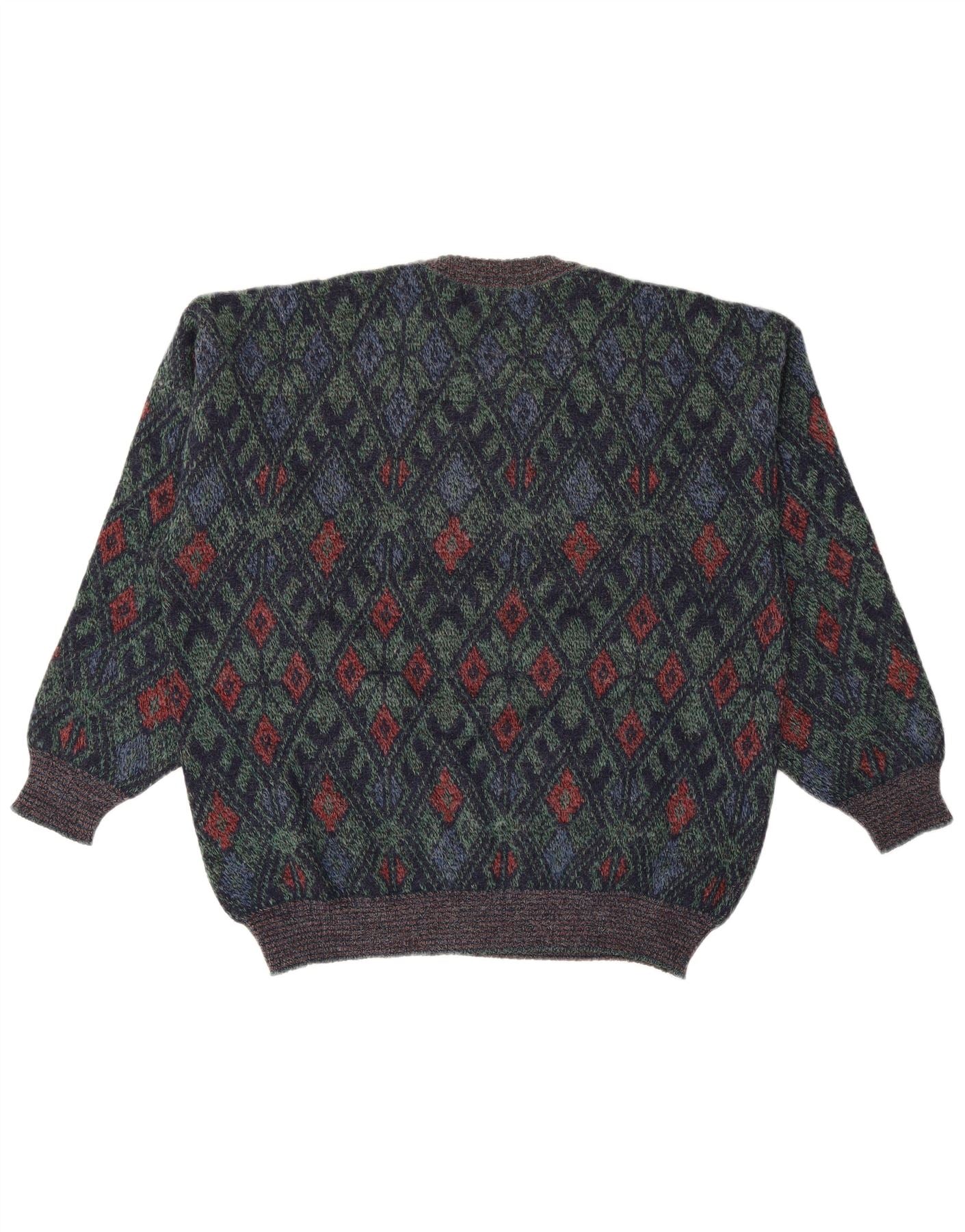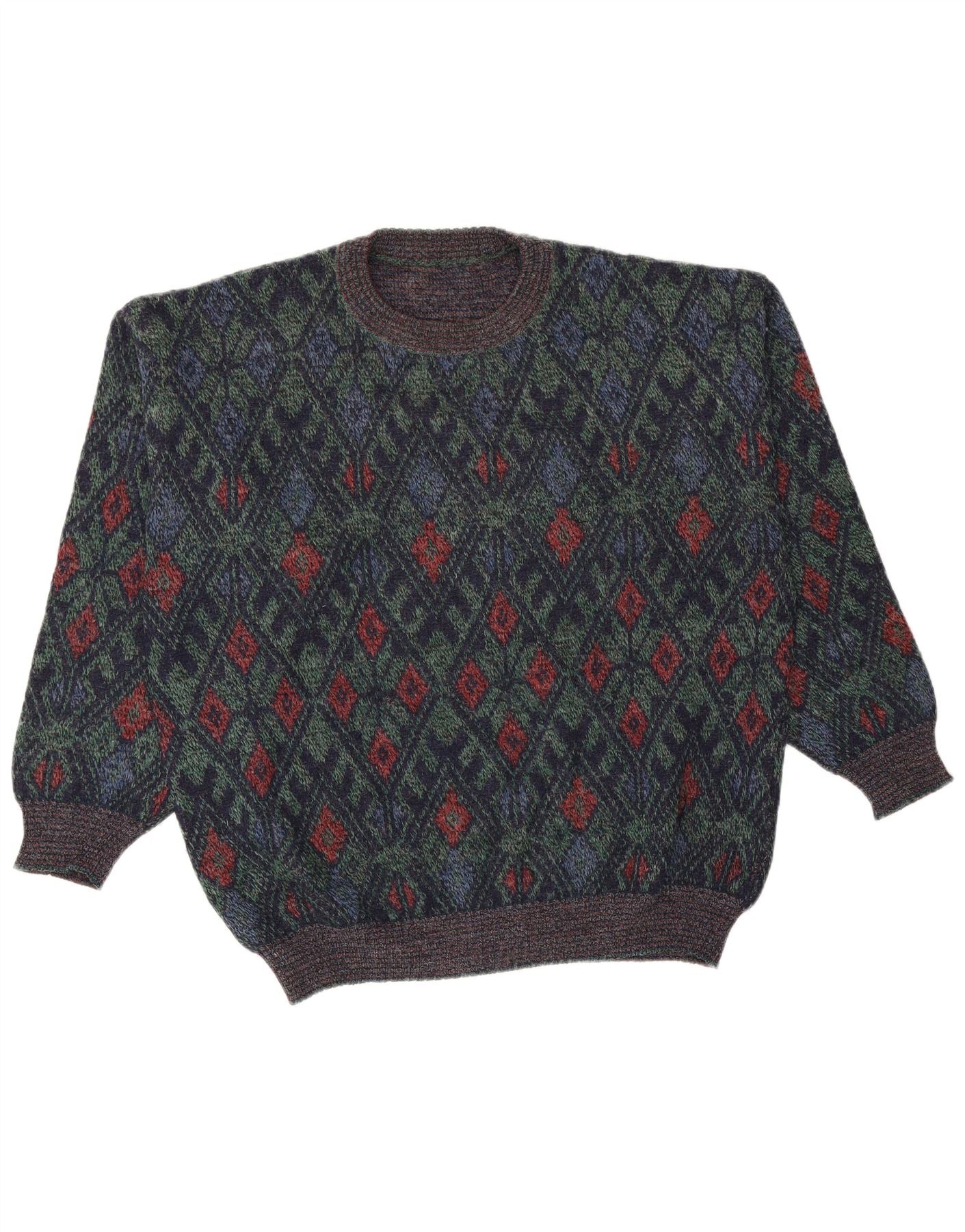Męski sweter VINTAGE z okrągłym dekoltem, duży, granatowy Argyle/Diament