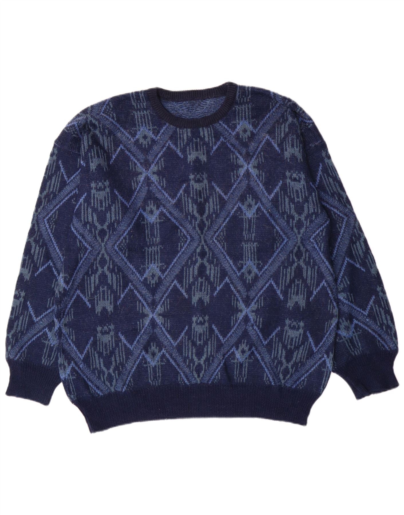 Vintage męski sweter z okrągłym dekoltem, duży granatowy Fair Isle