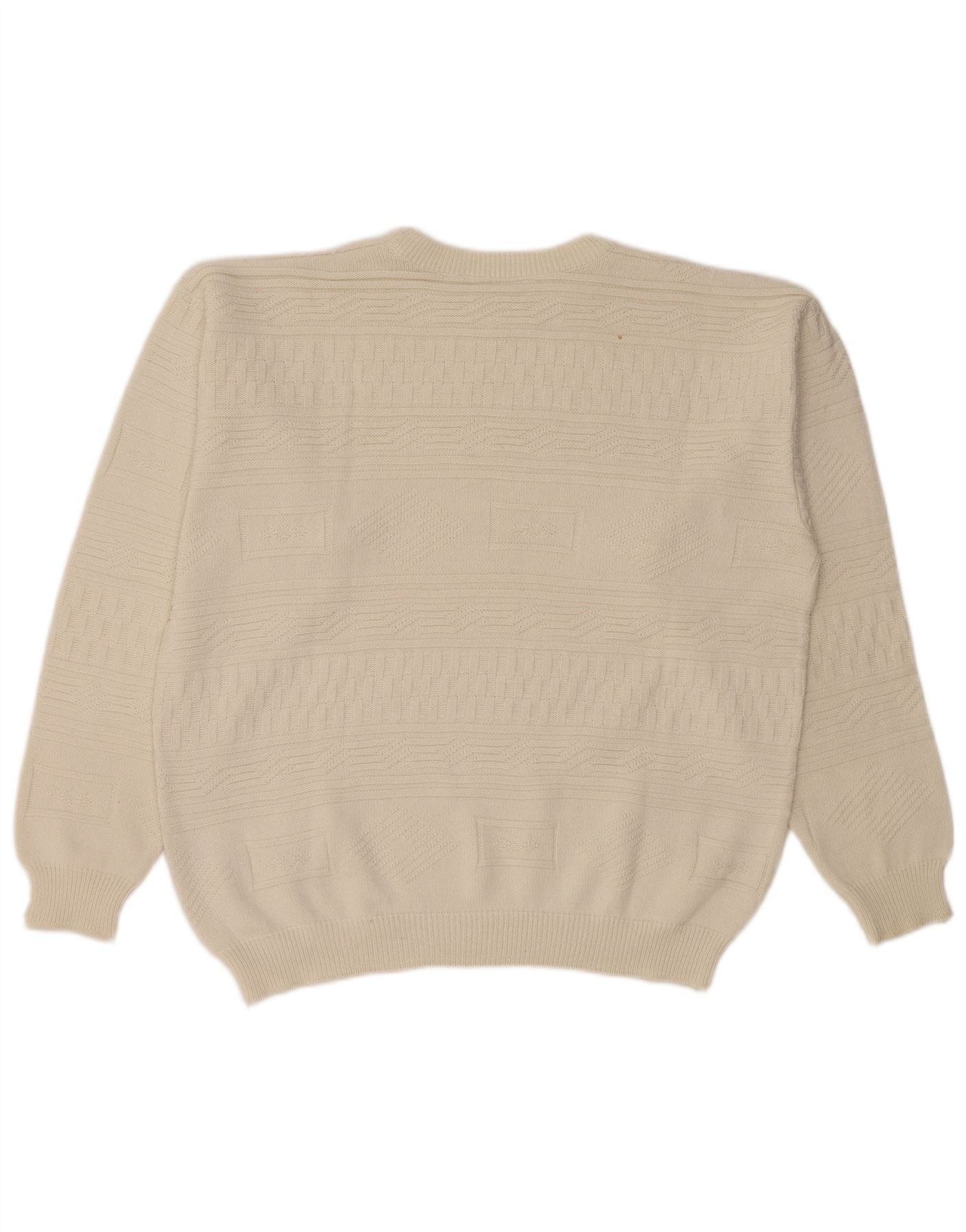 Męski sweter z okrągłym dekoltem w stylu VINTAGE, duży, biały, geometryczny, bawełniany