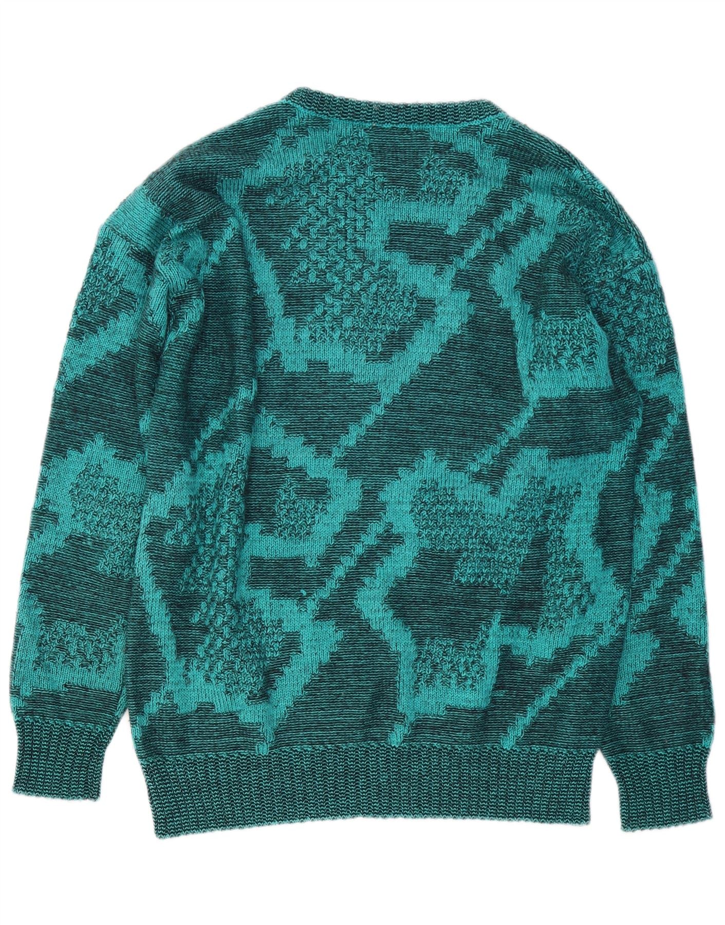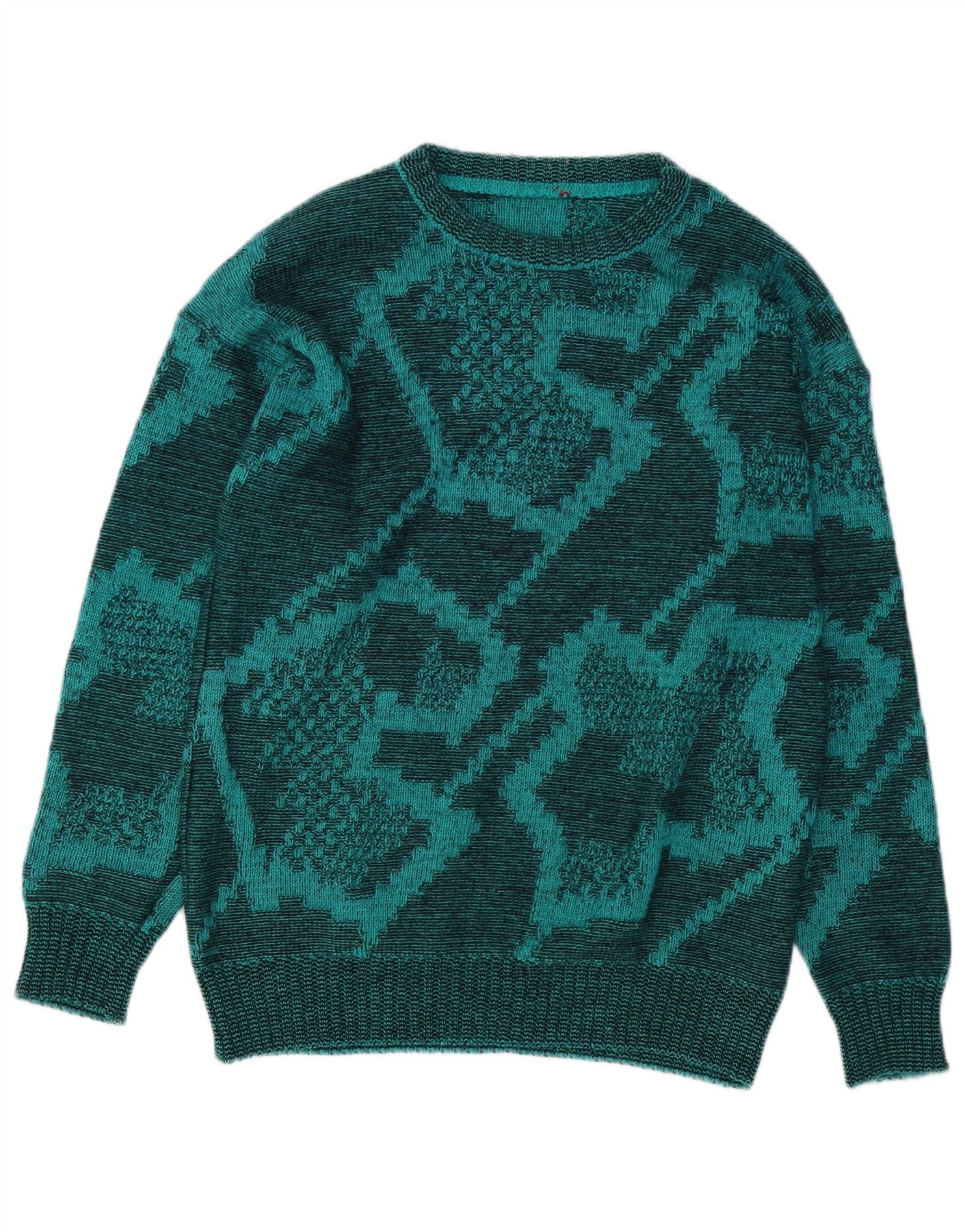 Męski sweter z okrągłym dekoltem w stylu VINTAGE, średnio zielony, geometryczny