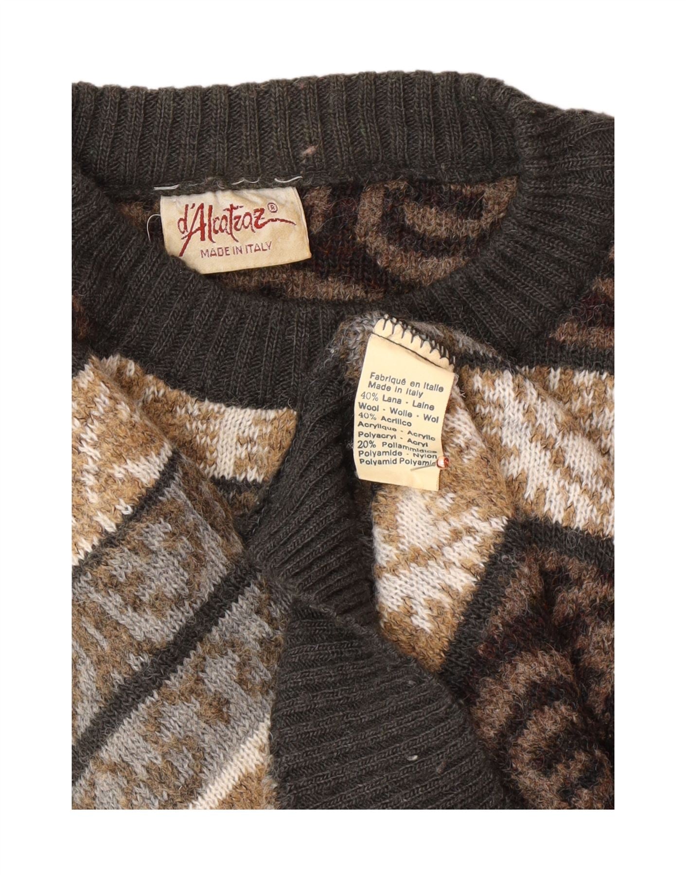 Męski sweter z okrągłym dekoltem w stylu VINTAGE, średnio wielobarwny, wełniany Fair Isle