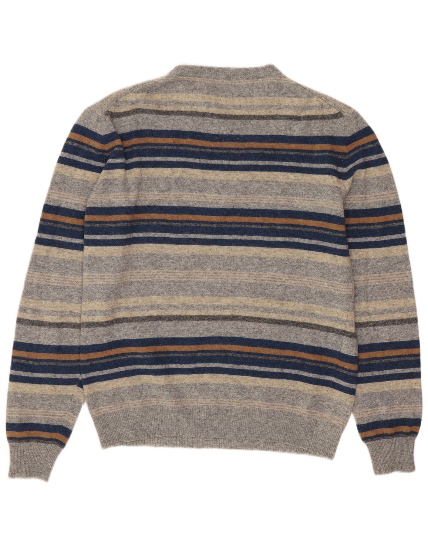 Vintage męski sweter z okrągłym dekoltem, mały, szary, z czystej wełny w paski