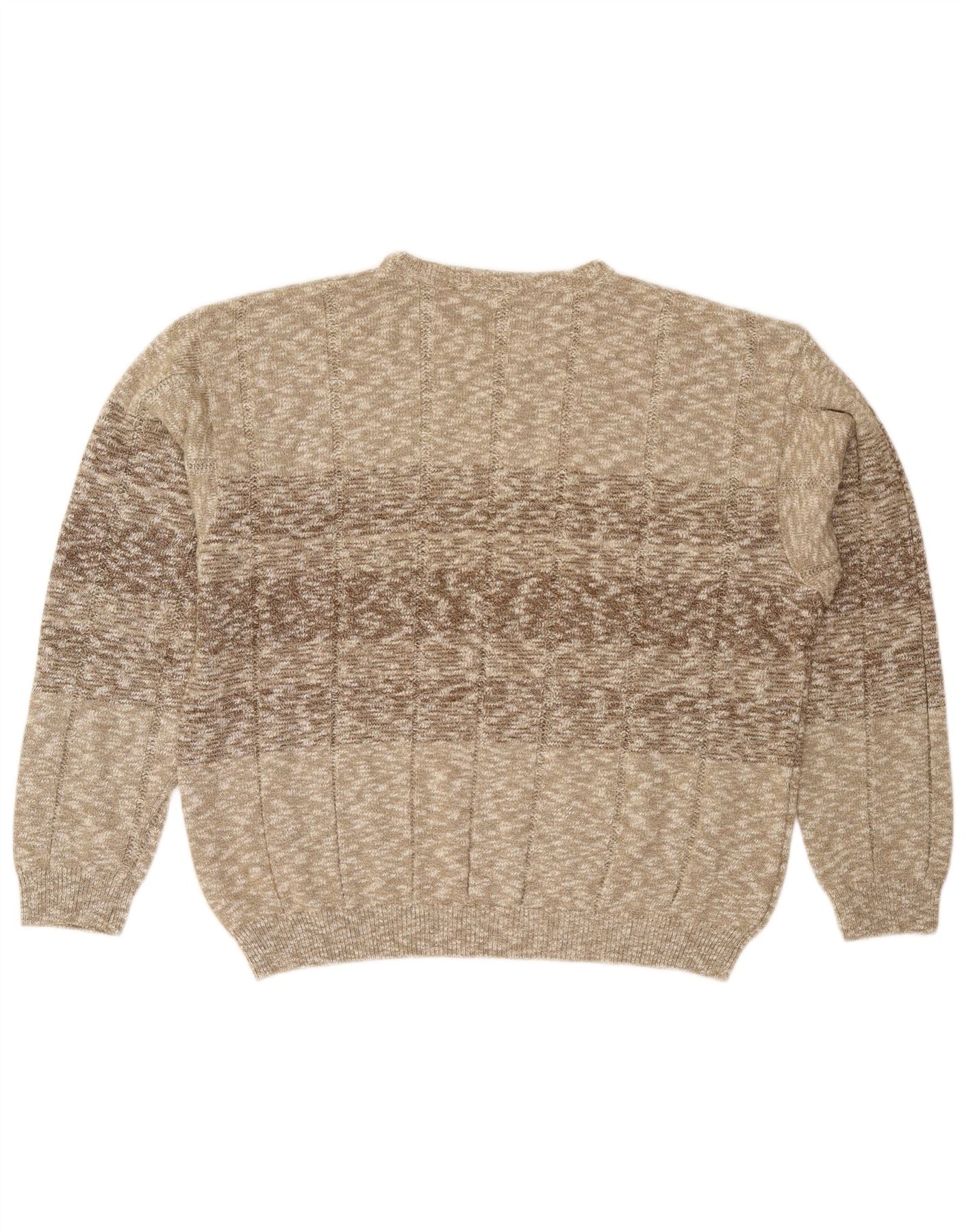 Vintage męski sweter z okrągłym dekoltem XL, beżowy, nakrapiany
