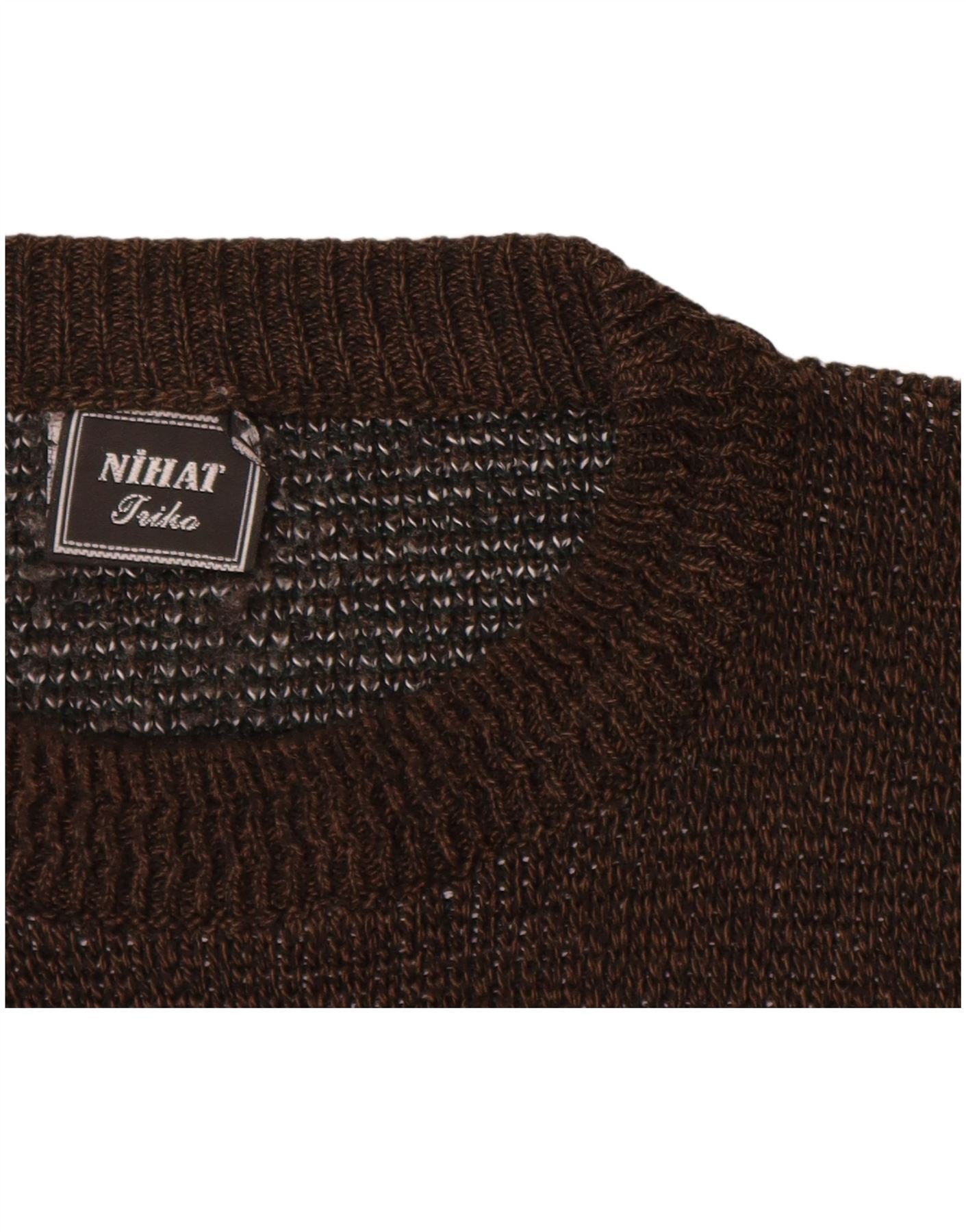 Męski sweter z okrągłym dekoltem w stylu VINTAGE XL, brązowy, akrylowy z blokami kolorów