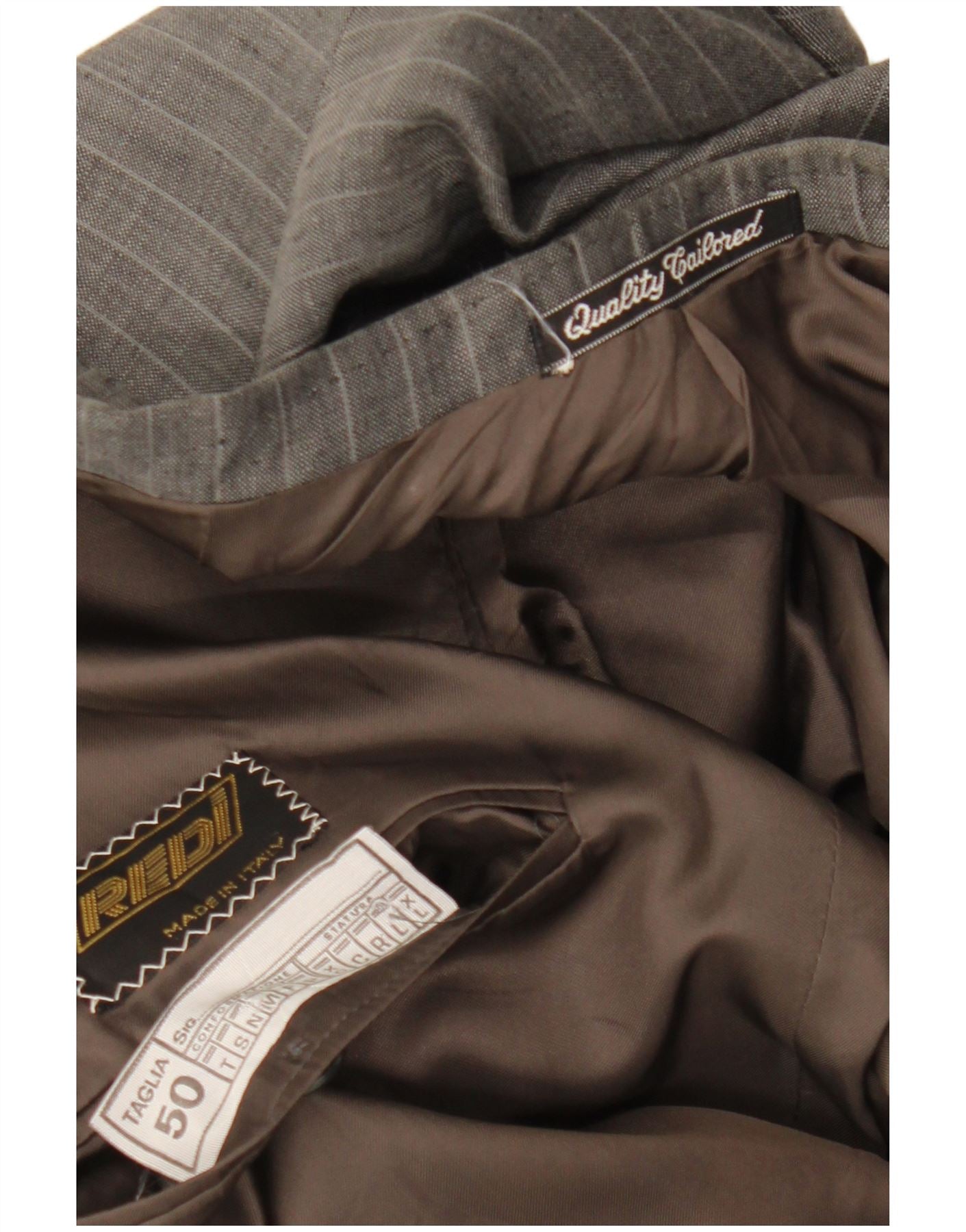 Męska marynarka z podwójnymi piersiami w stylu vintage IT 50, duża, szara w prążki
