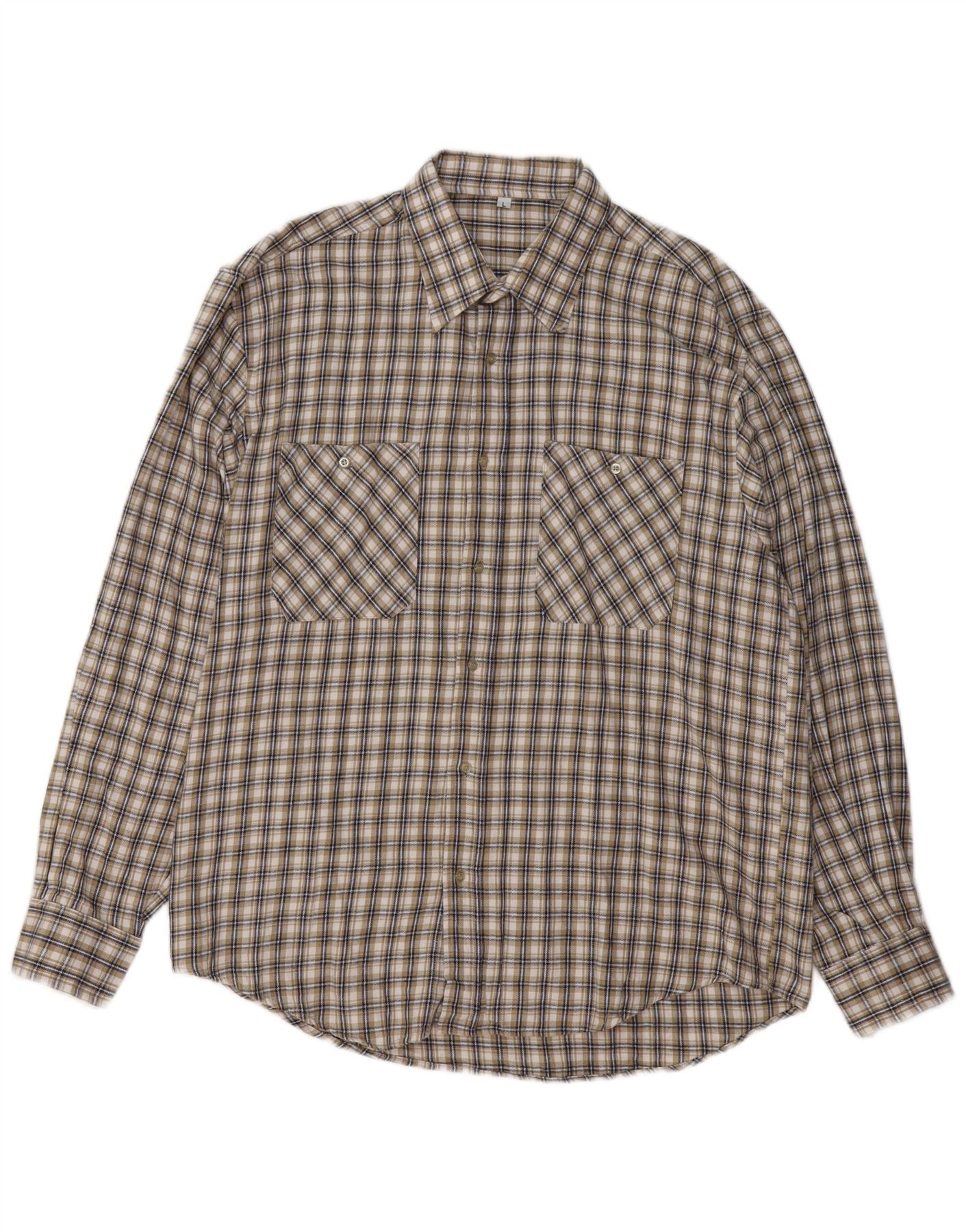 VINTAGE Męska koszula flanelowa w dużą beżową kratę, bawełniana