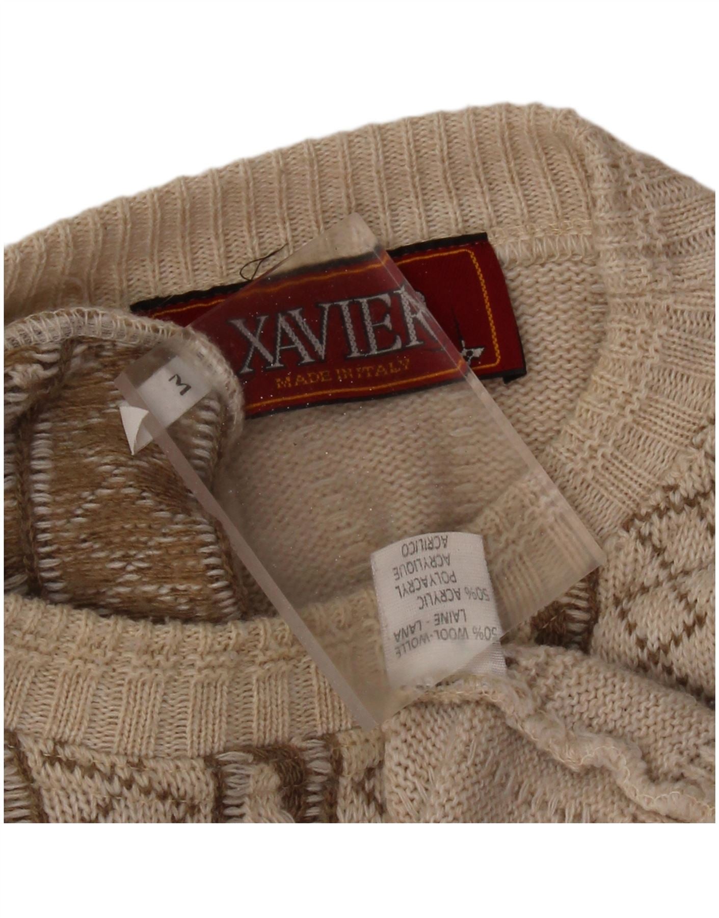 Męski sweter z okrągłym dekoltem w stylu VINTAGE, wełniany w średnie beżowe paski