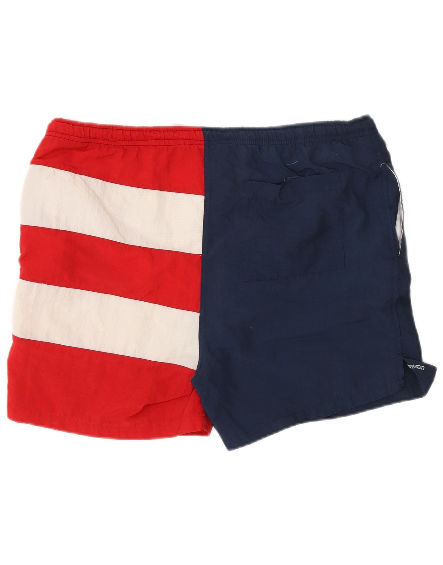 - Opis sztucznej inteligencji: Te męskie spodenki kąpielowe w stylu vintage są wykonane z tkaniny. Mają elastyczną talię i sznurek do ściągania, co zapewnia bezpieczne i regulowane dopasowanie. Regularny krój zapewnia wygodę i swobodę ruchów. Uderzający wzór z blokami kolorów łączy granat z odważnymi czerwonymi i białymi paskami. Wyszywane logo kotwicy morskiej dodaje charakterystycznego detalu. Są w pełni wyłożone dla praktyczności, idealne do pływania.