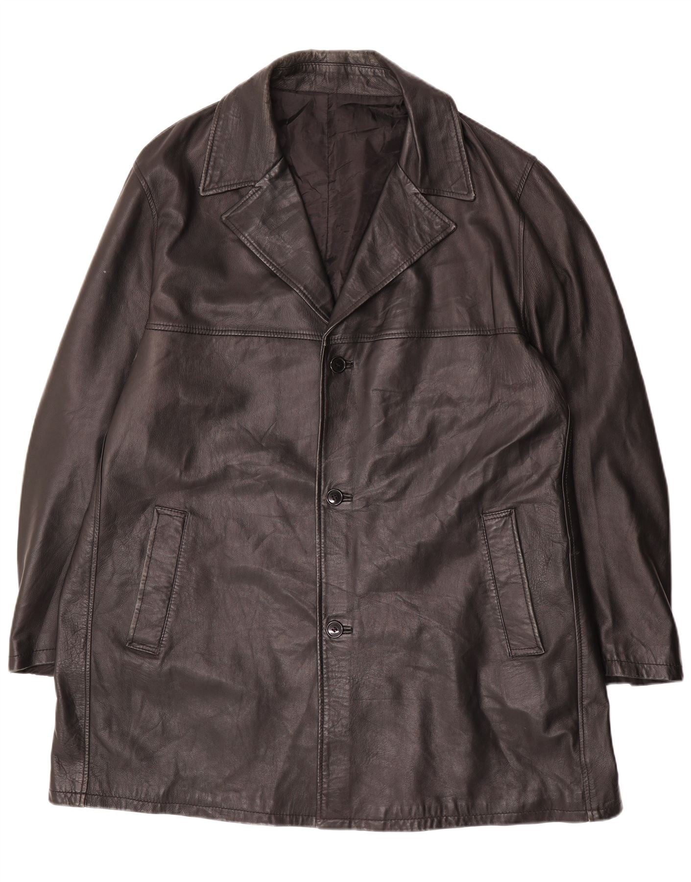 Vintage męski płaszcz skórzany rozmiar 62 4XL czarna skóra