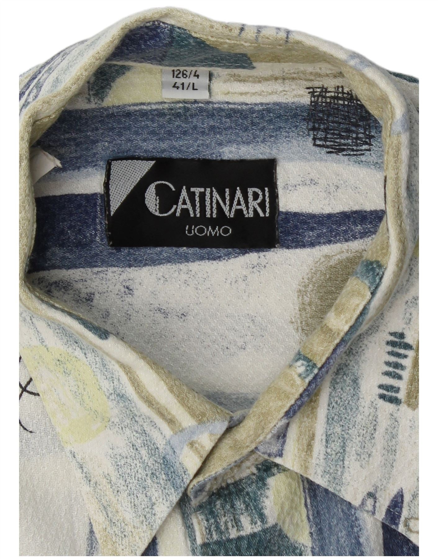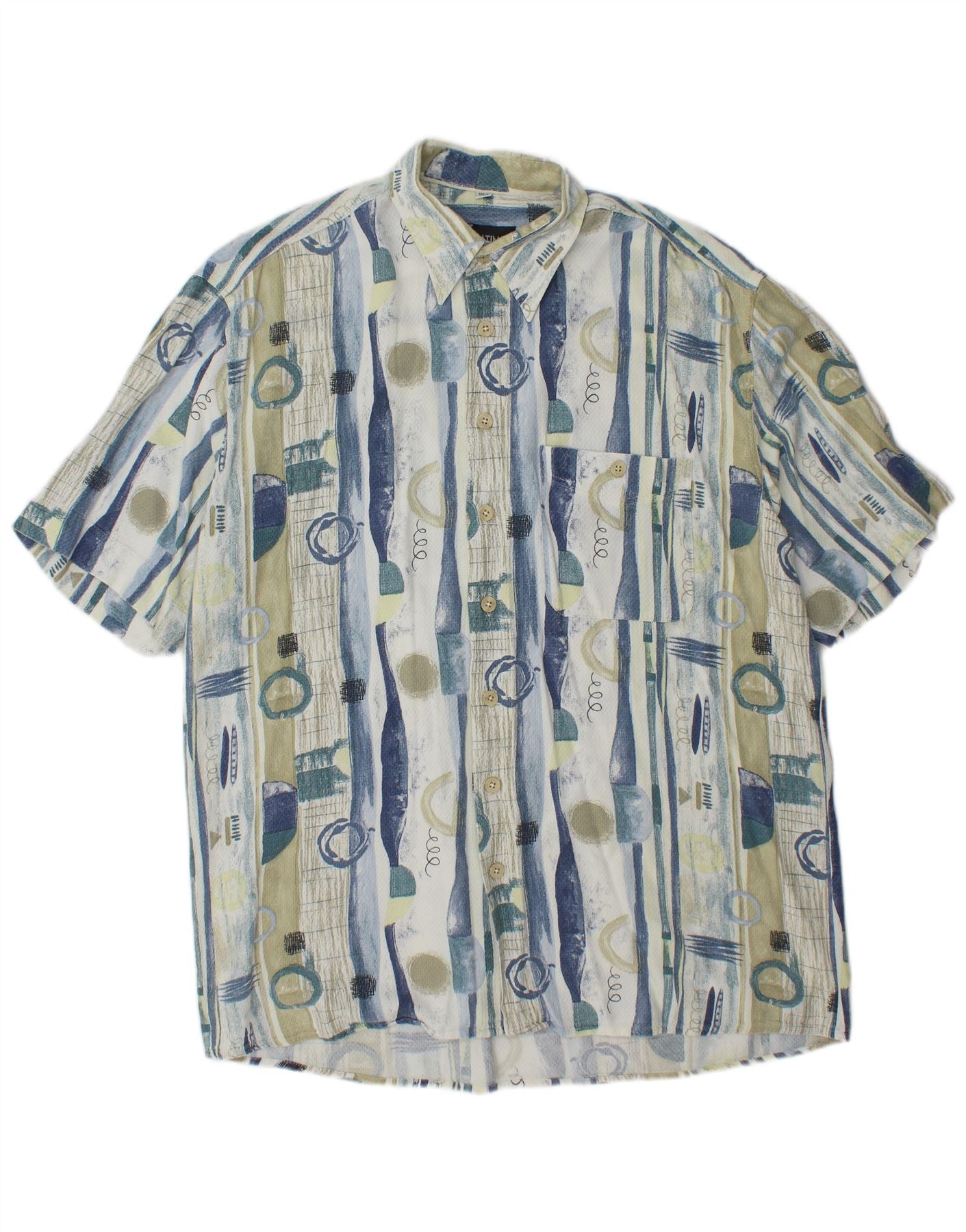Koszula męska VINTAGE Longline w abstrakcyjny wzór, rozmiar 41, duża niebieska