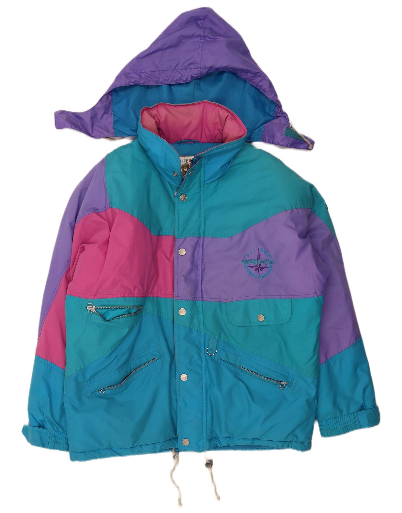 Męska kurtka narciarska z kapturem i luźnym krojem VINTAGE UK 38 w kolorze średnioniebieskim