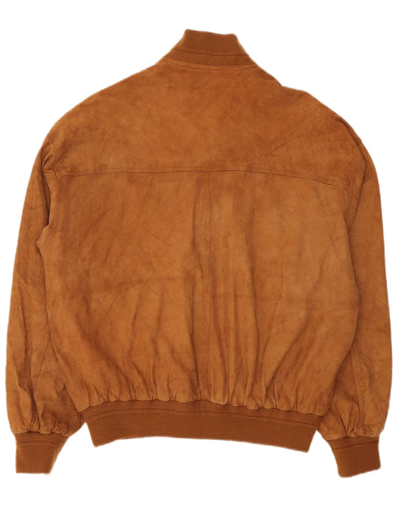 VINTAGE Mens Loose Fit Suede Bomber Jacket UK 36 Small Brown Leather
