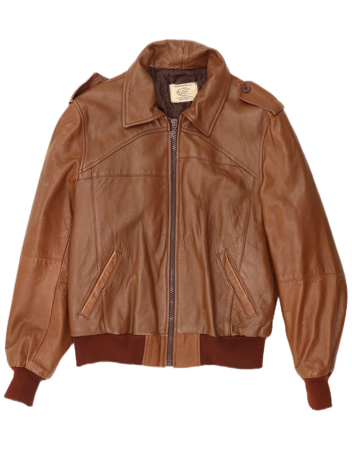 Home > Kurtki skórzane w stylu vintage > Brązowe skórzane kurtki w stylu vintage > Męska skórzana kurtka wojskowa VINTAGE UK 40 duża brązowa skóra