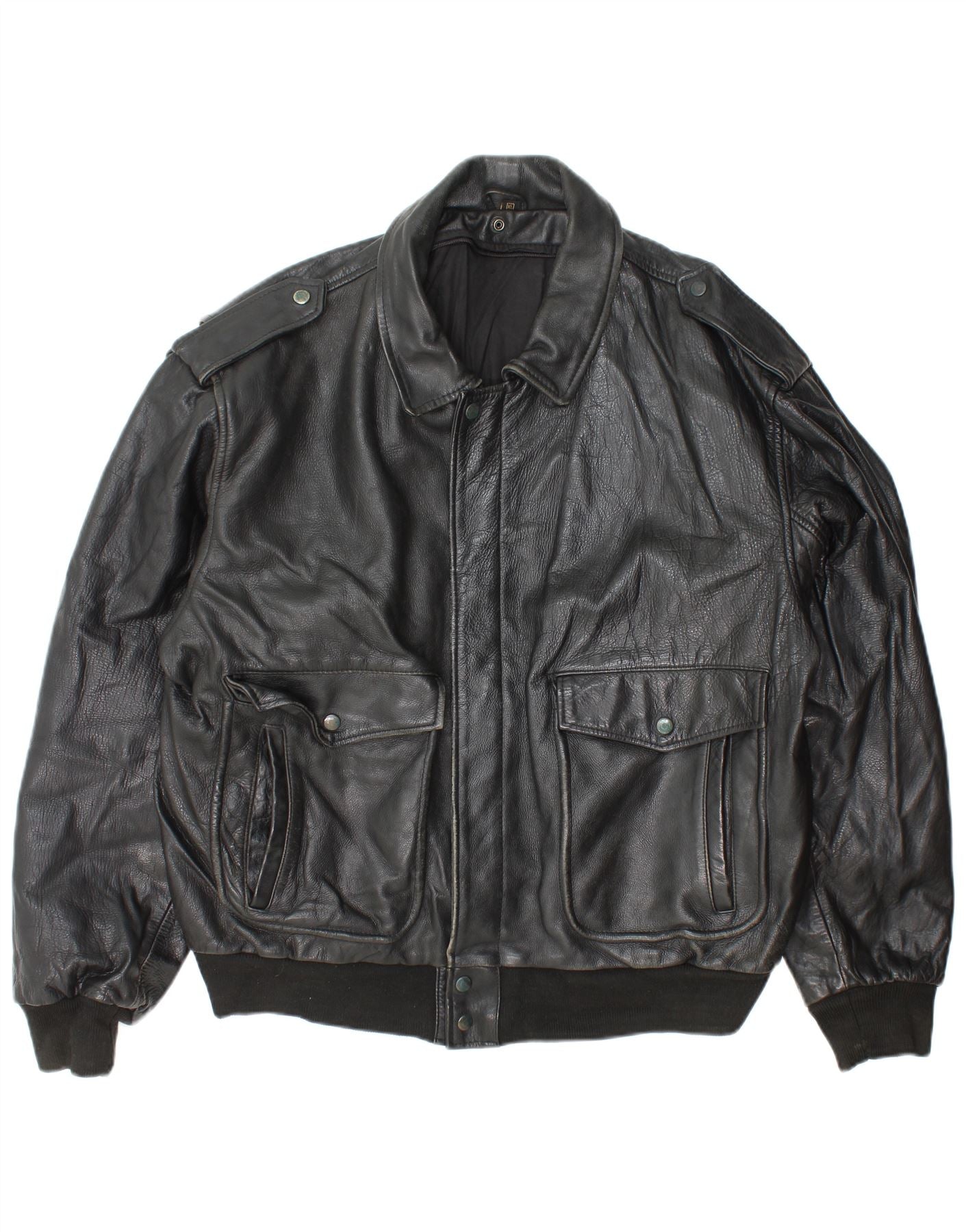 Vintage męska skórzana kurtka wojskowa UK 42 XL czarna skóra