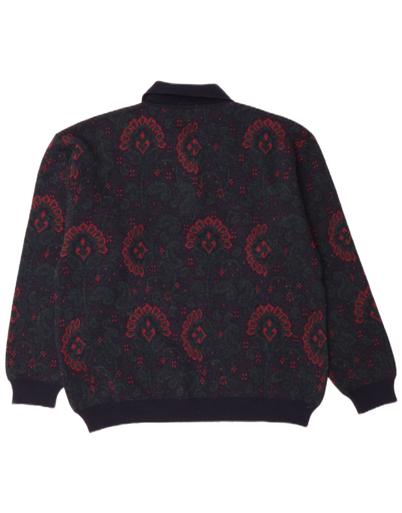 Męski sweter z dekoltem w stylu VINTAGE, średni granatowy, wełniany paisley
