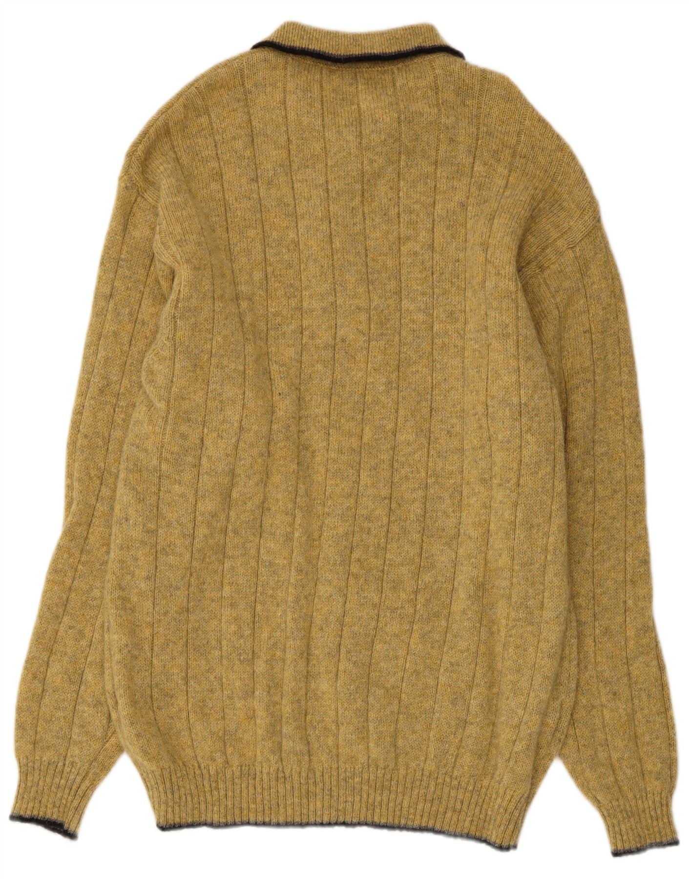 Męski sweter z golfem w stylu vintage, średnia żółta wełna