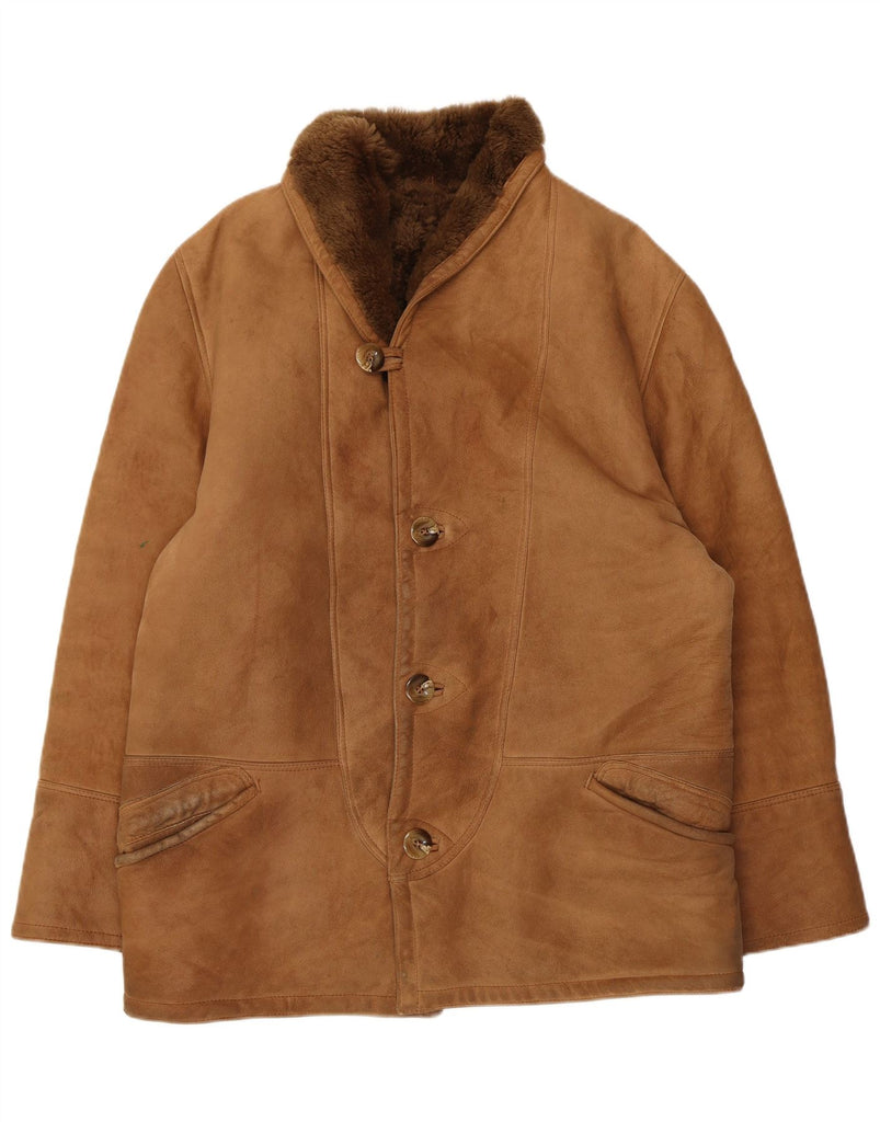 Męska kurtka Shearling VINTAGE UK 40, duża, brązowa kurtka Shearling