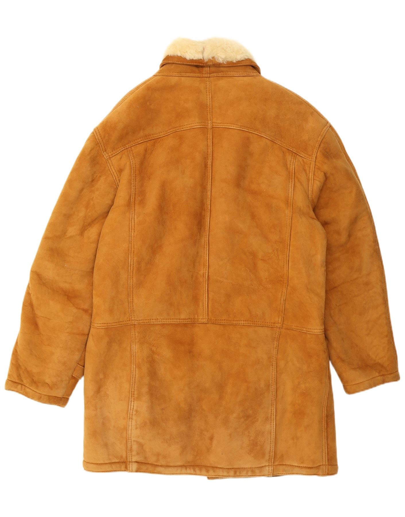 Vintage męski płaszcz z owczej skóry UK 40, duży beżowy płaszcz z owczej skóry