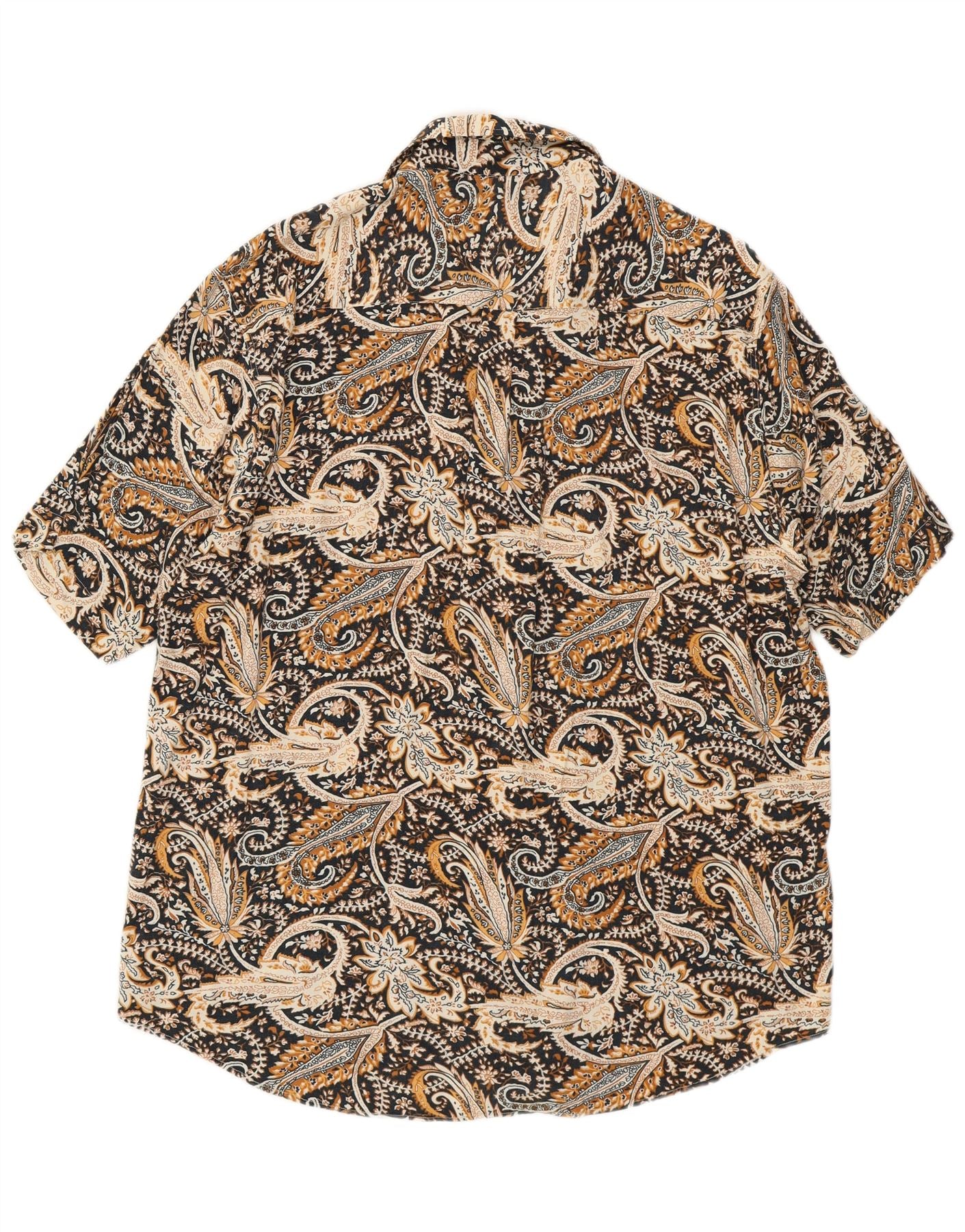 Vintage męska koszula z krótkim rękawem, duża czarna paisley