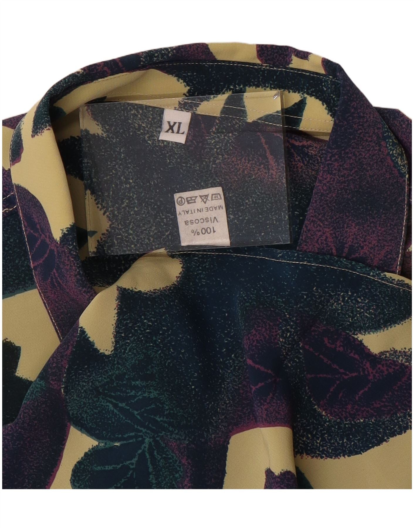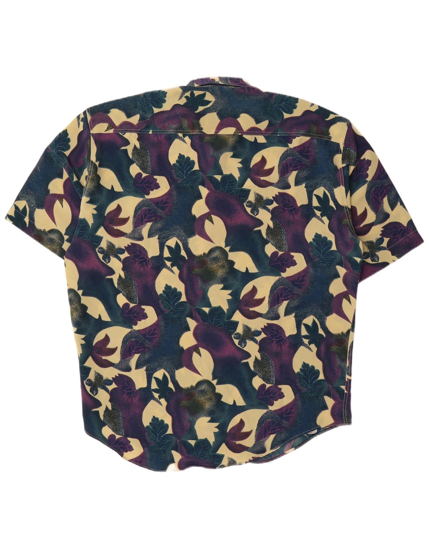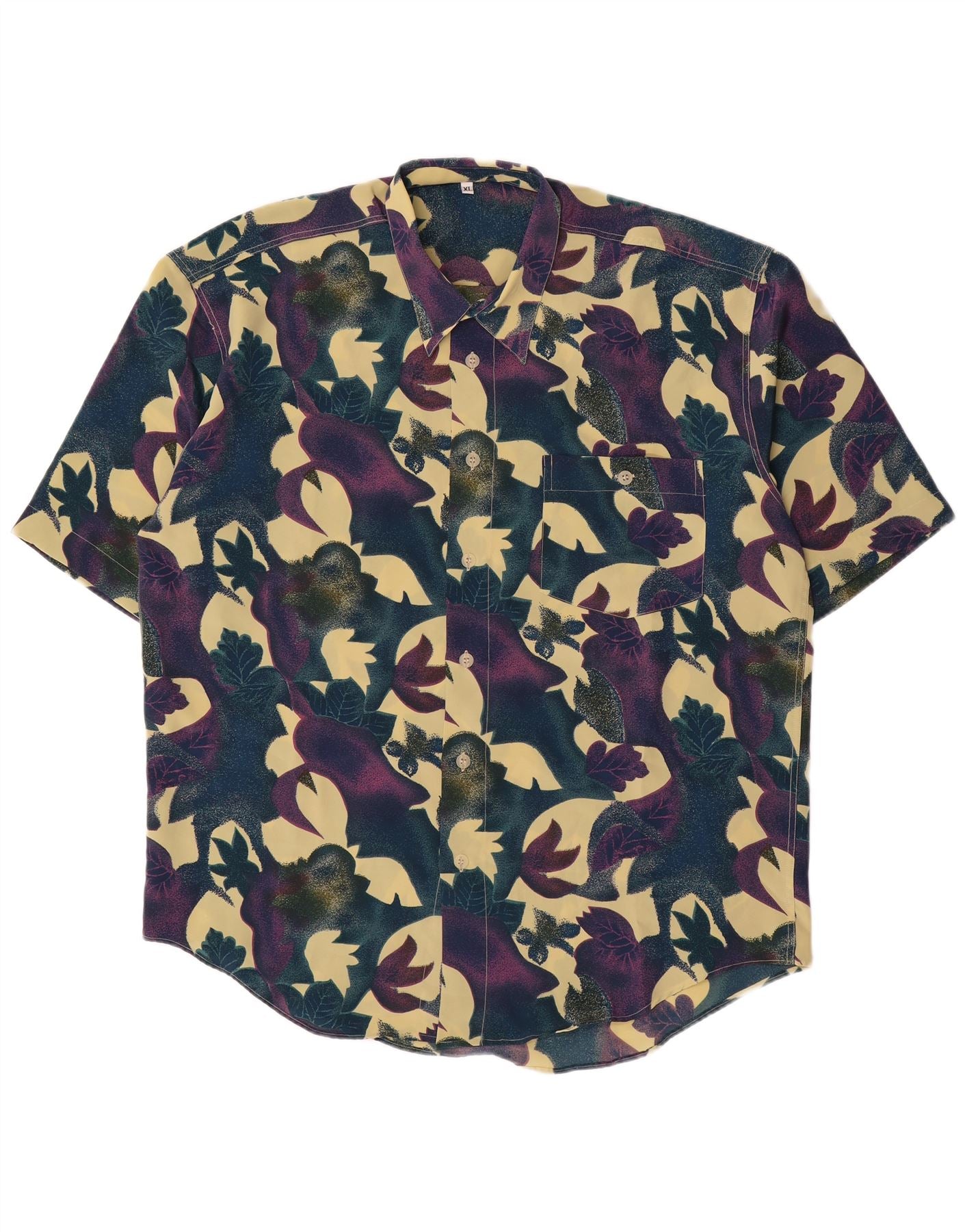 Koszula męska z krótkim rękawem VINTAGE XL, granatowa, w kwiaty, wiskoza