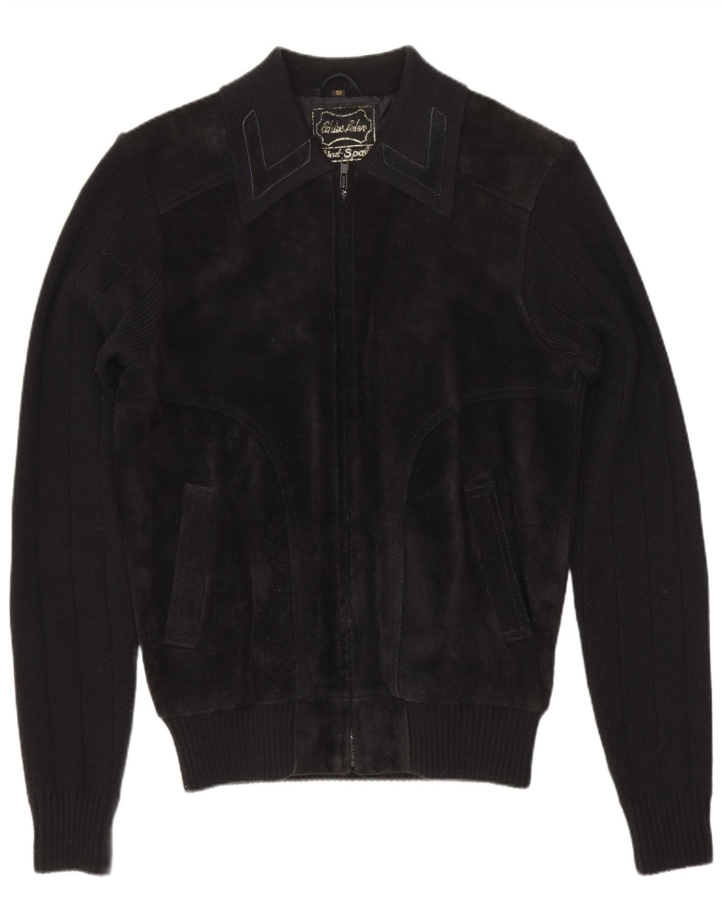 Męska zamszowa kurtka bomberka VINTAGE EU 50, duża czarna skóra