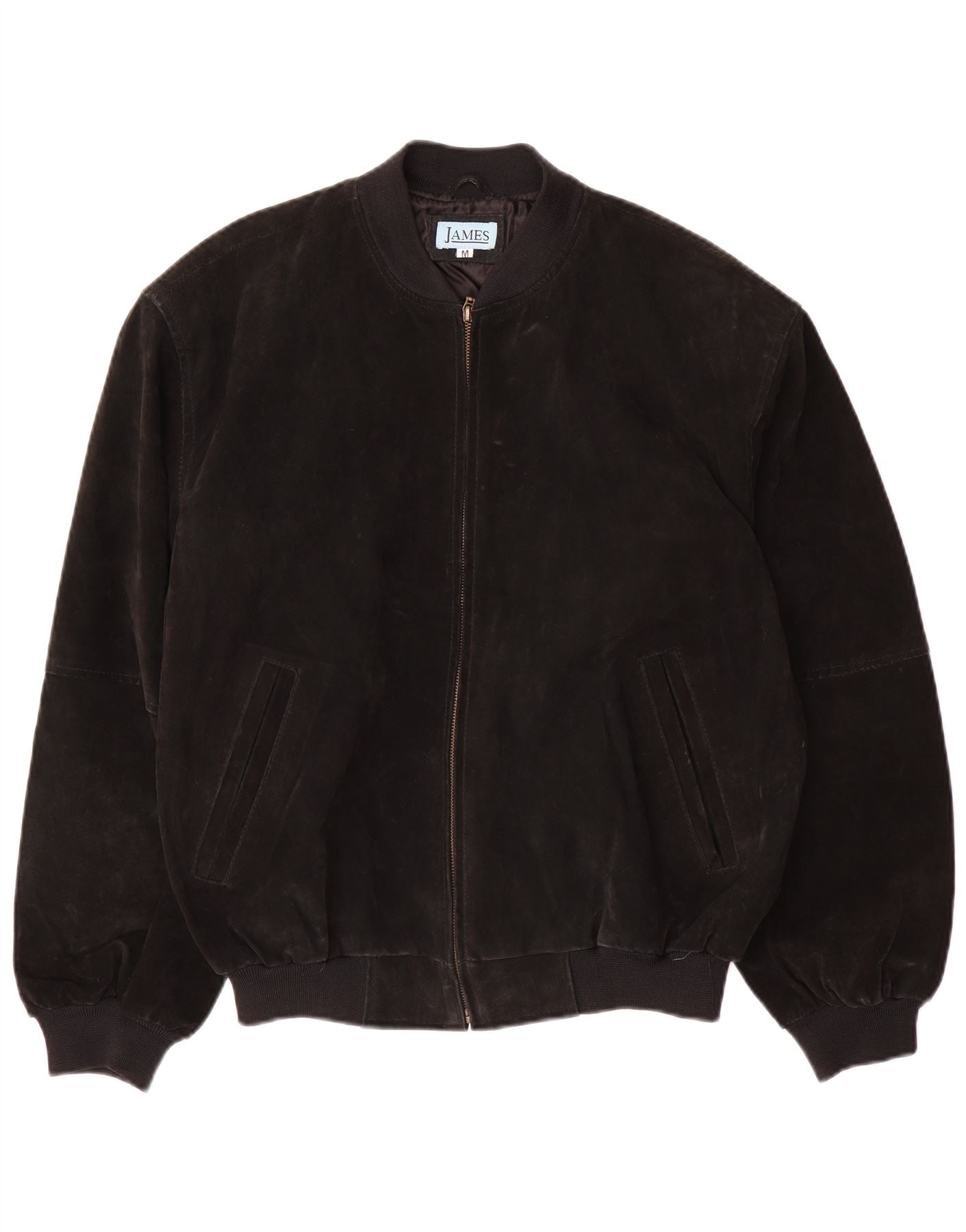 Męska zamszowa kurtka bomberka VINTAGE UK 38, średnia czarna skóra