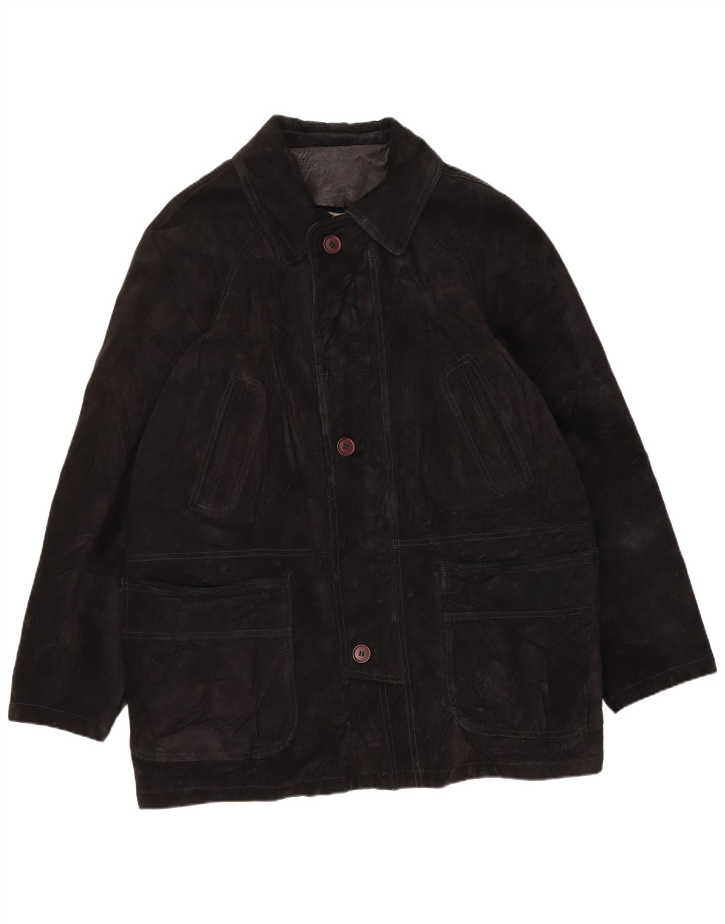 Zamszowa kurtka męska VINTAGE IT 50, duża, czarna, skórzana