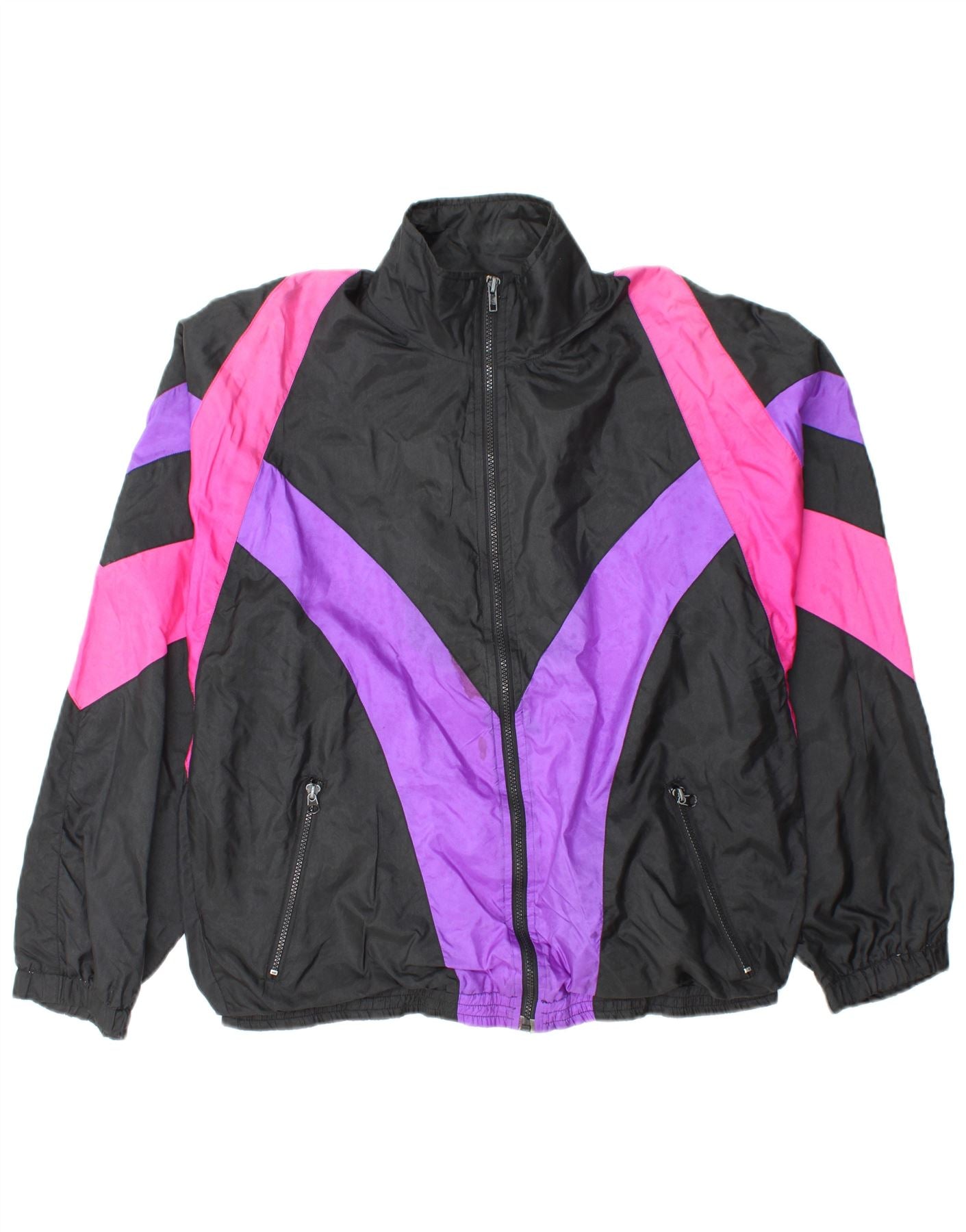 Męska kurtka dresowa VINTAGE, duża, czarna, nylonowa z blokami kolorów