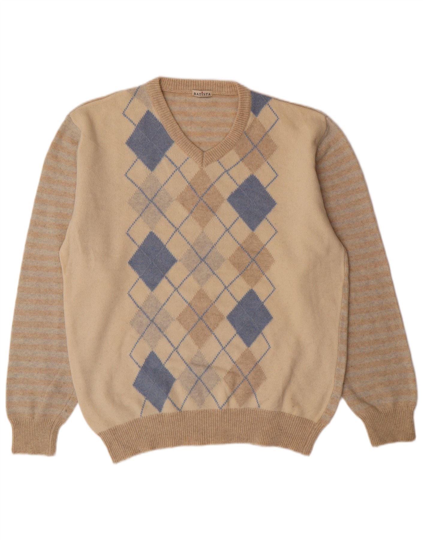 Sweter męski w stylu vintage z dekoltem w kształcie litery V, 2XL, beżowy Argyle/diamentowa wełna owcza