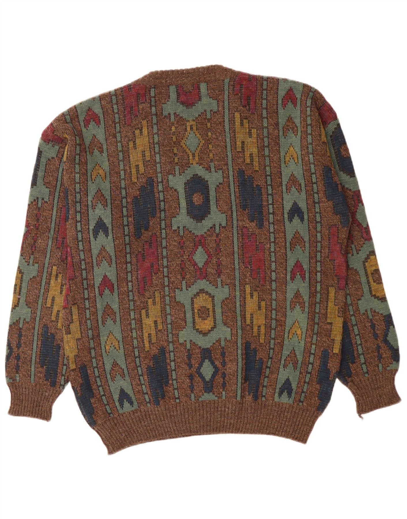 Męski sweter VINTAGE z dekoltem w kształcie litery V IT 50 Średni brązowy geometryczny