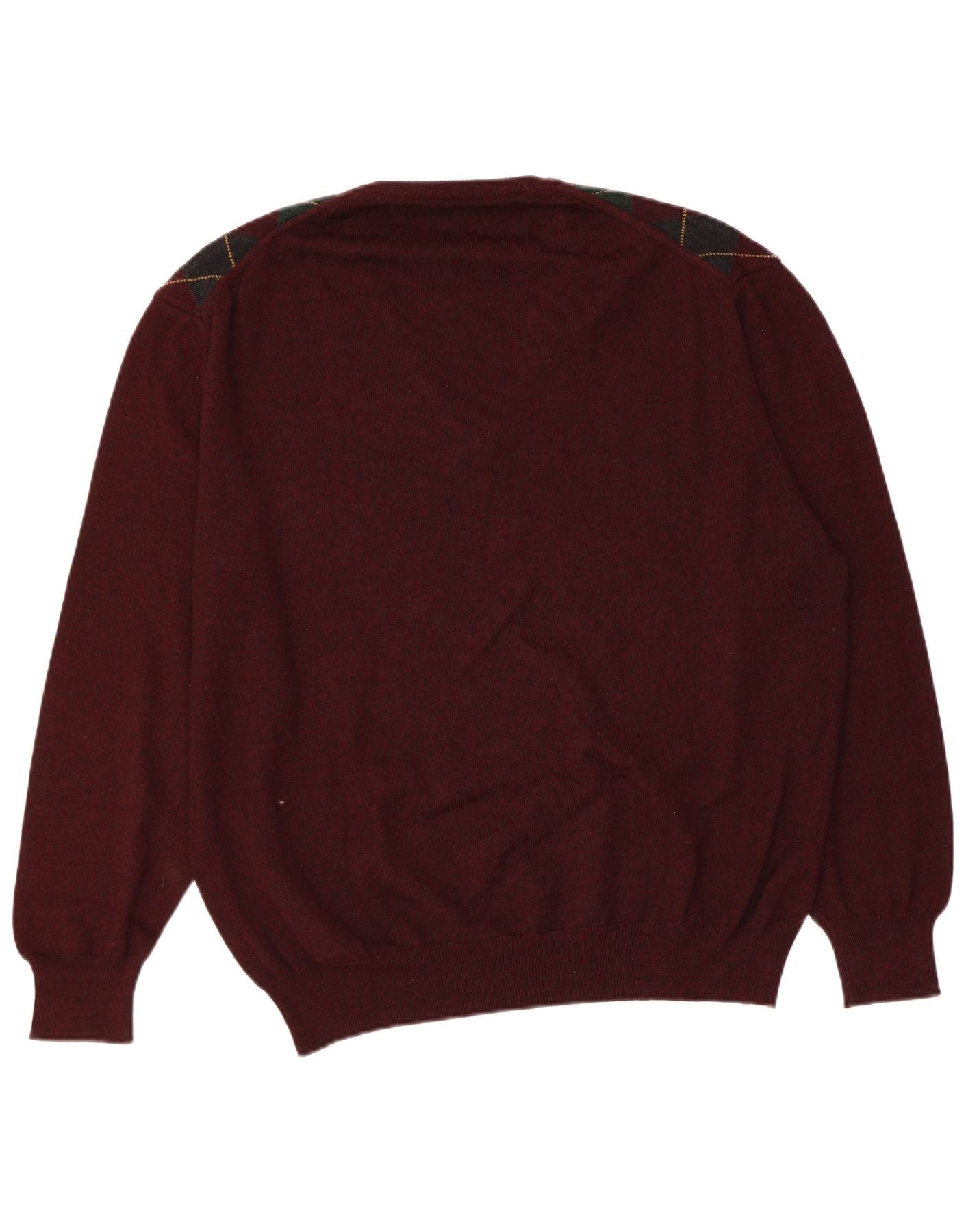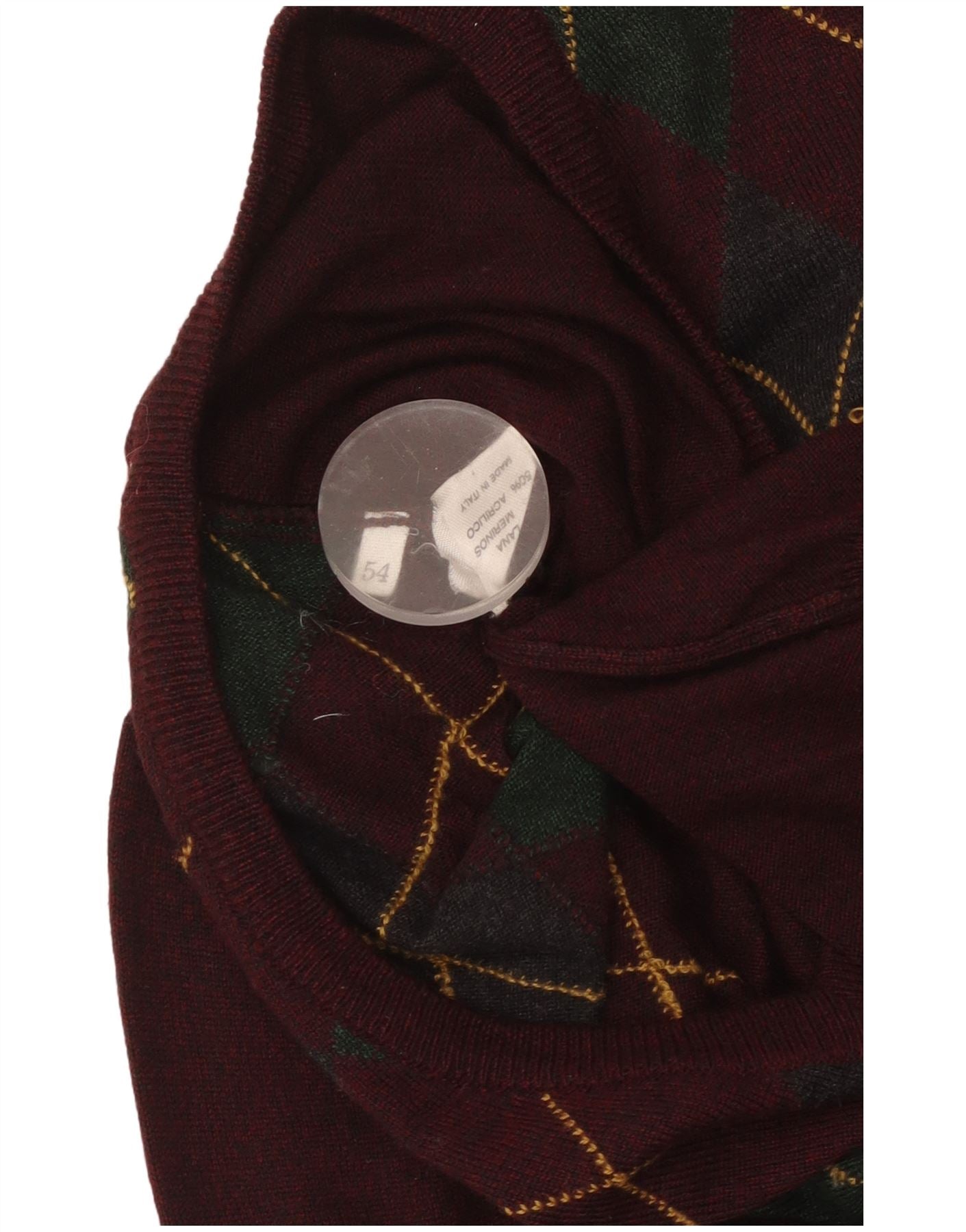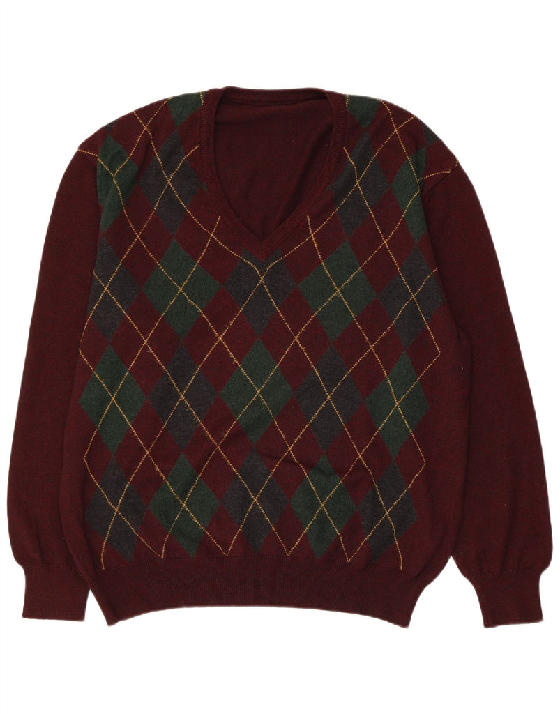 Męski sweter VINTAGE z dekoltem w szpic IT 54 XL Bordowy Argyle/diamentowa wełna