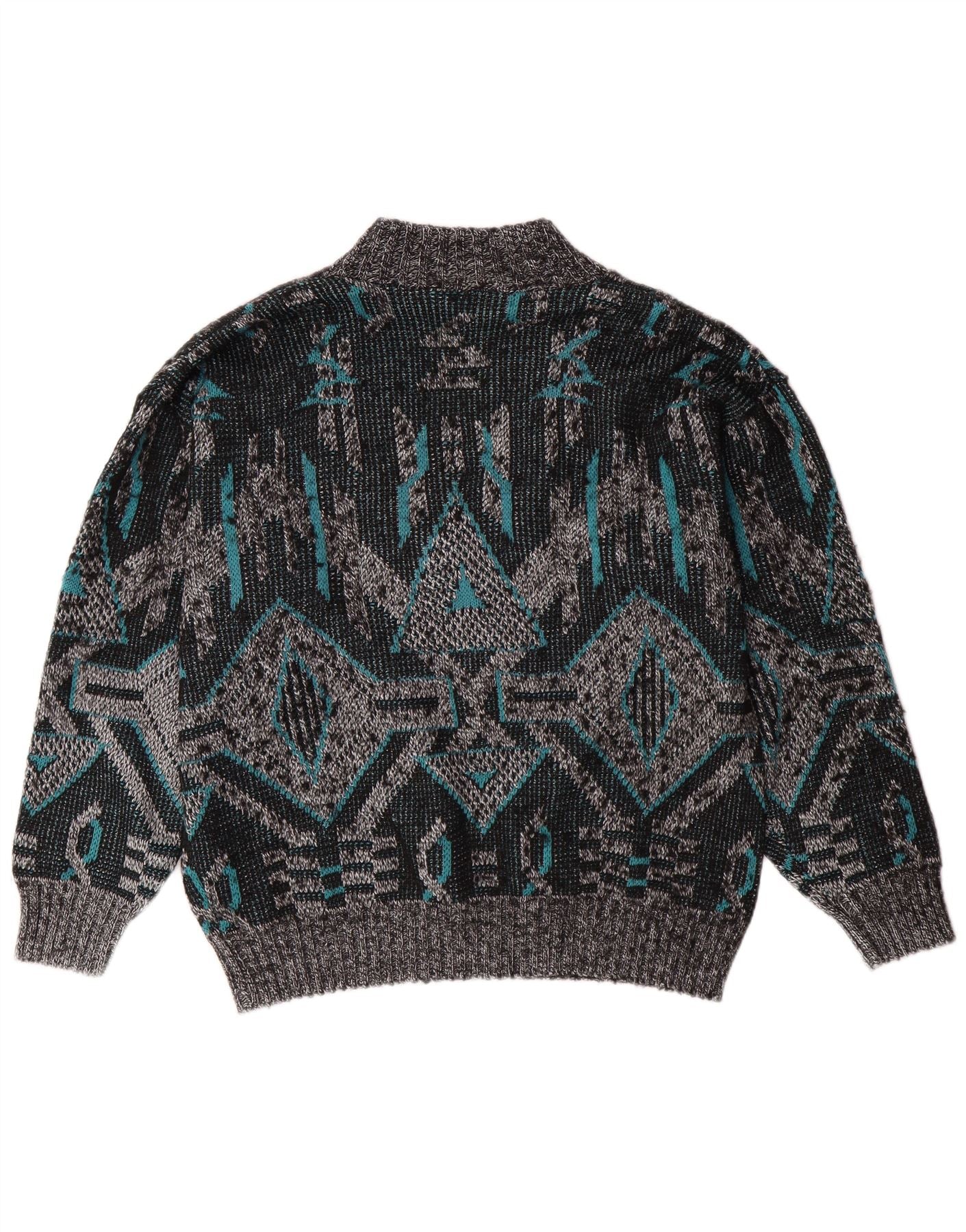 Męski sweter VINTAGE z dekoltem w kształcie litery V, duży, szary, geometryczny