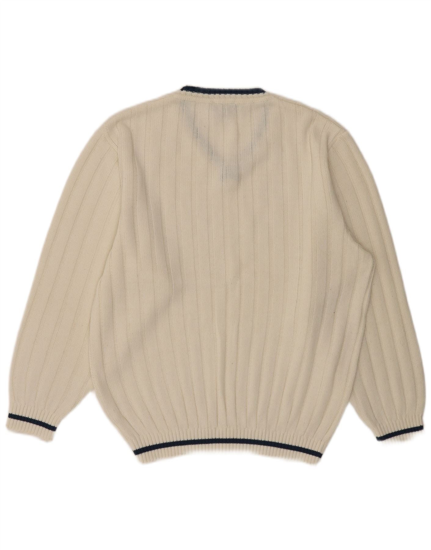 Męski sweter VINTAGE z dekoltem w szpic UK 40/42 Średni biały poliakryl
