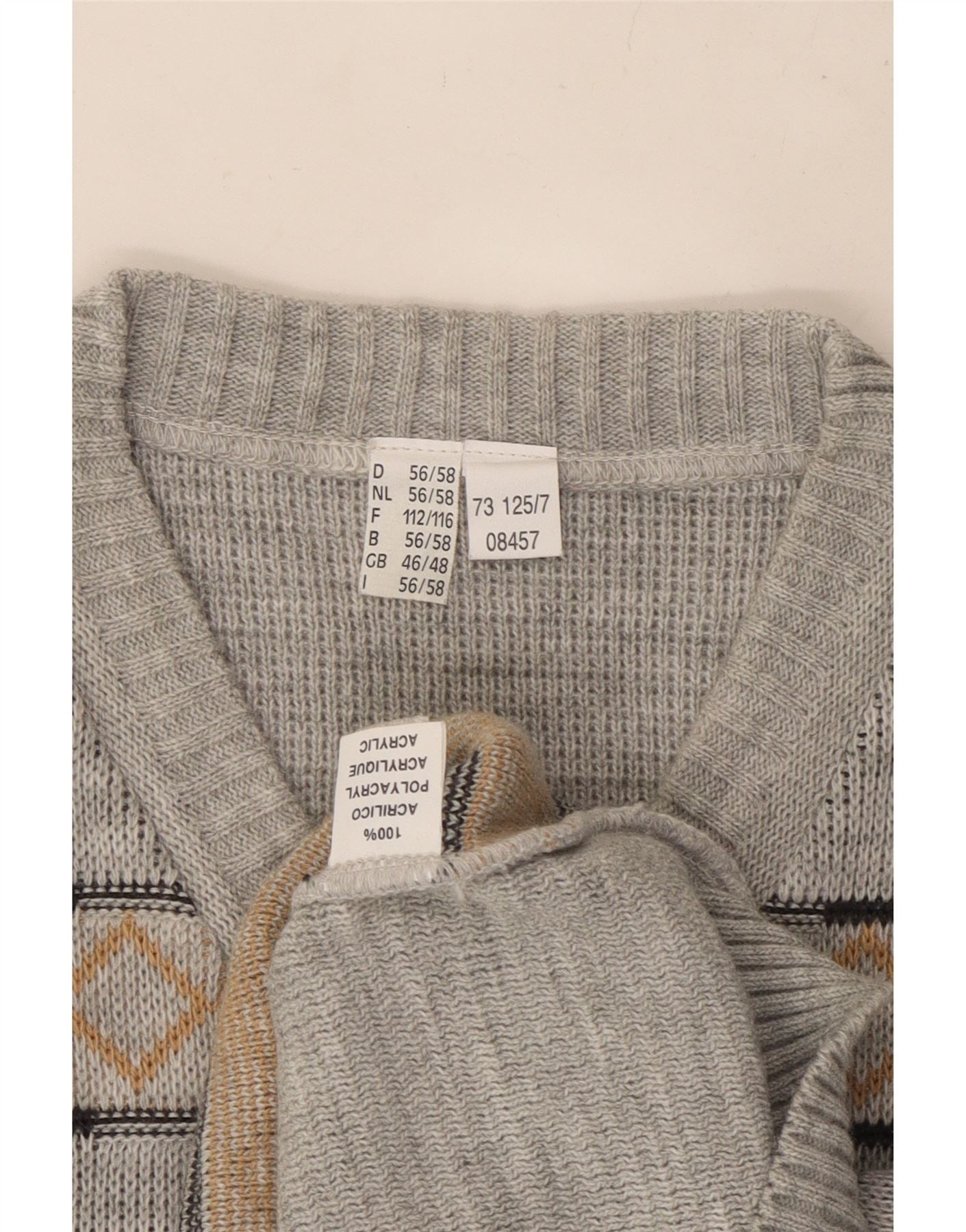 Męski sweter VINTAGE z dekoltem w kształcie litery V UK 46/48 2XL Szary Argyle/Diament