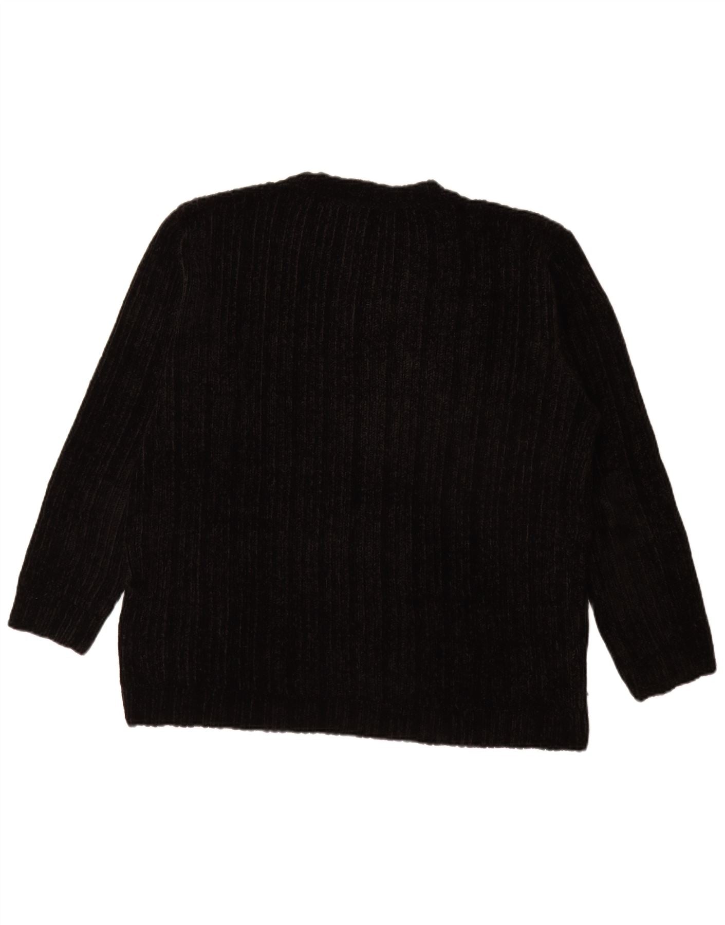 Vintage męski sweter z dekoltem w kształcie litery V, XL, czarny akryl