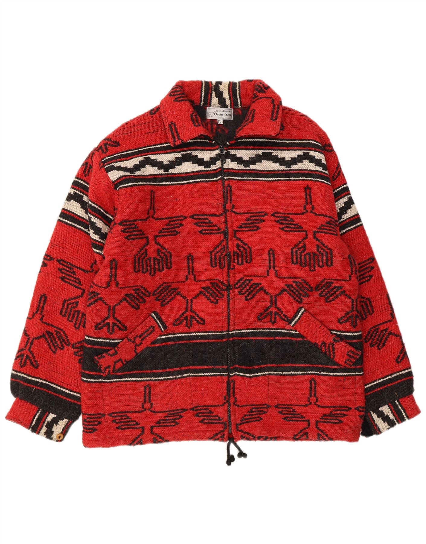 Vintage męska kurtka wiatrówka UK 40 duża czerwona geometryczna Tribal