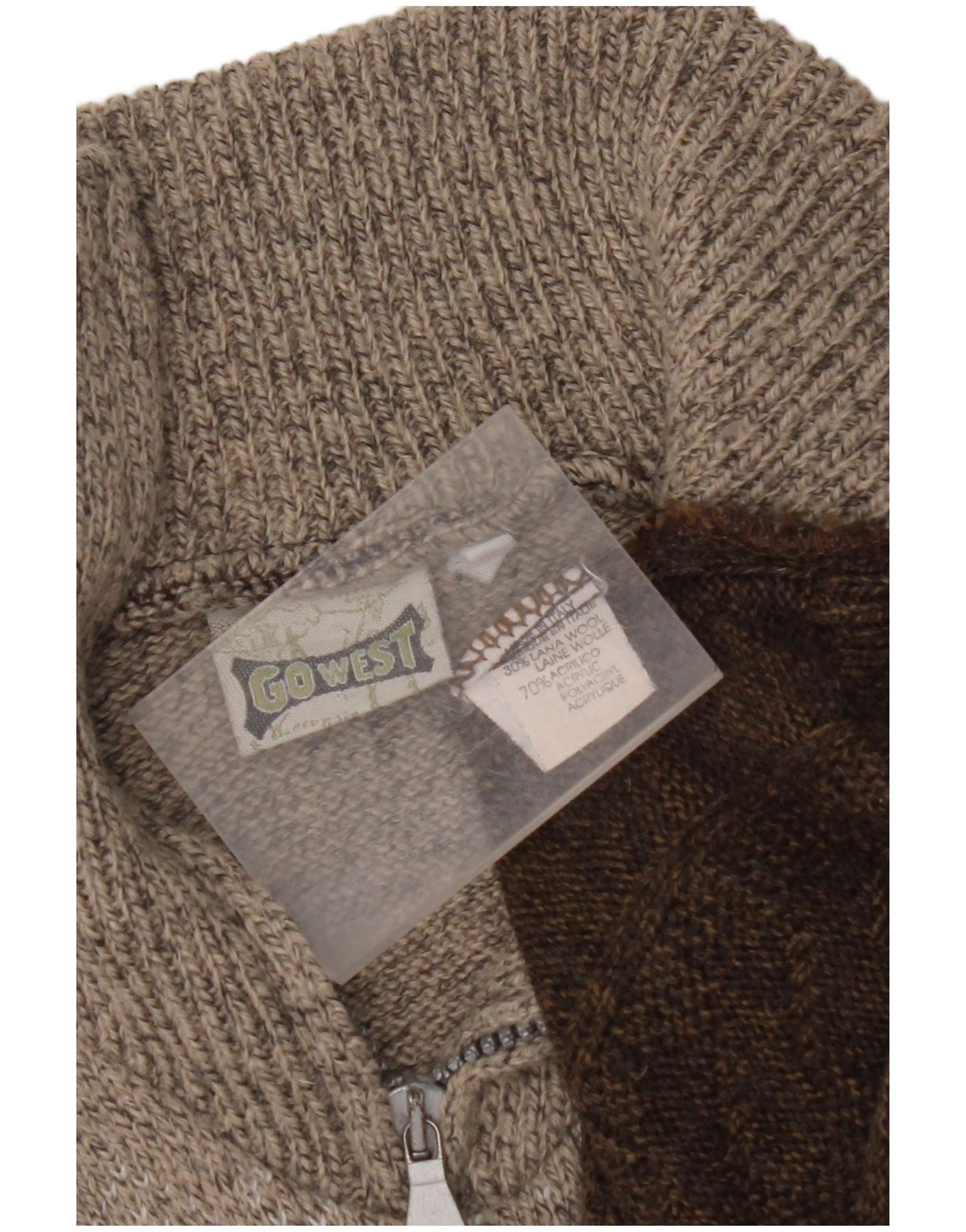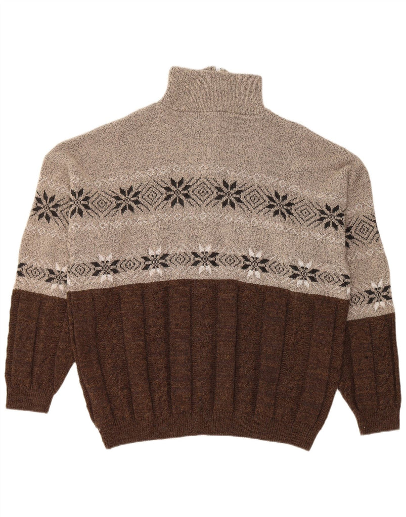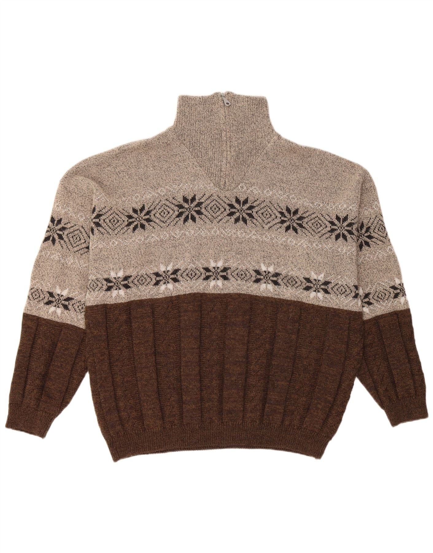 Męski sweter zapinany na zamek w stylu VINTAGE XL, brązowy, wełniany Fair Isle
