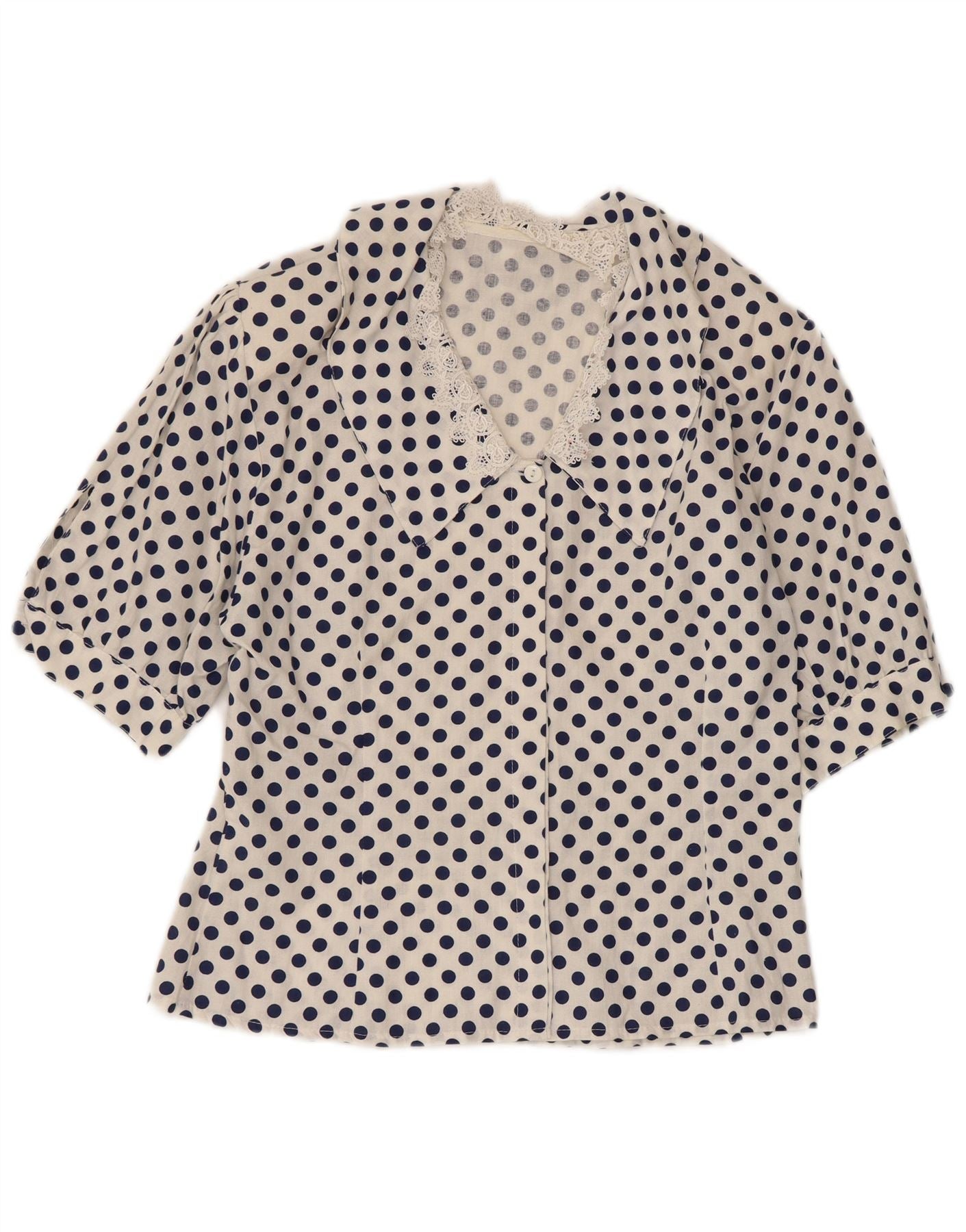 Damska bluzka koszulowa z rękawem 1/2 VINTAGE UK 12, średnia biała w kropki