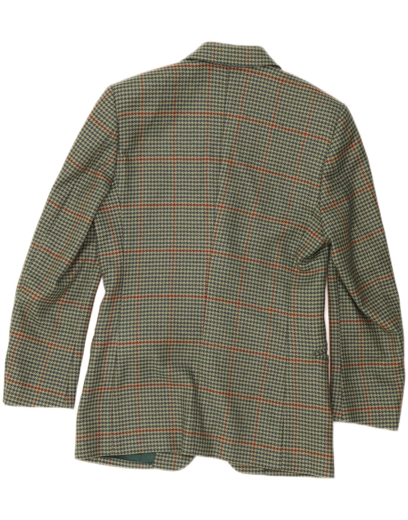 VINTAGE Womens 2 Button Blazer Jacket IT 40 Small Green Houndstooth Wool