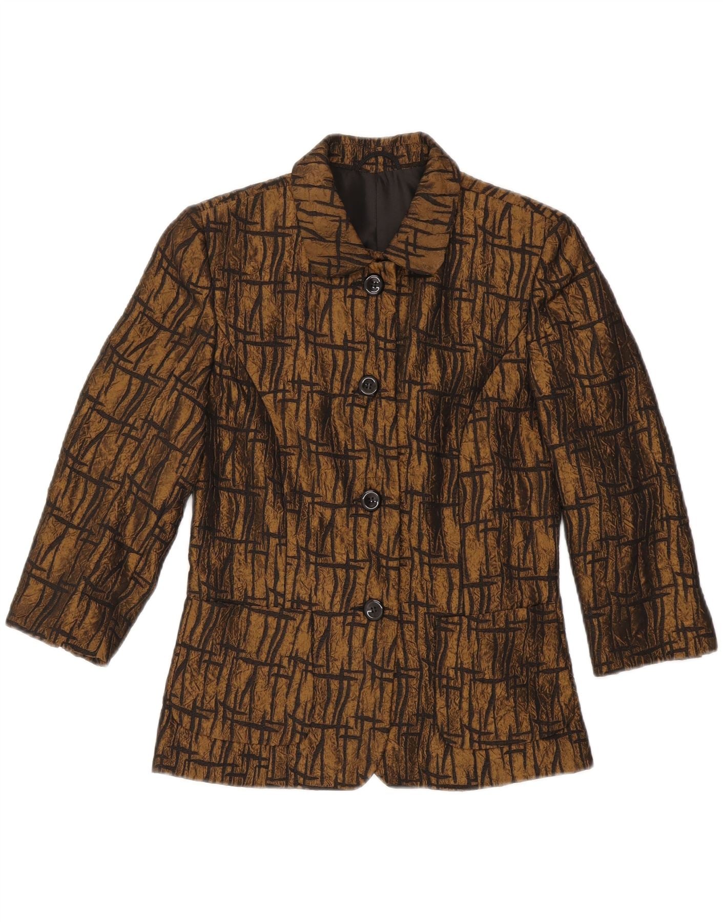 Damska marynarka z rękawem 3/4 VINTAGE UK 10, mała, brązowa, geometryczna