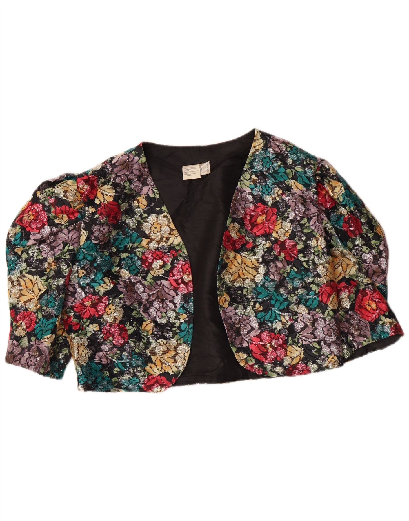 VINTAGE Damska kurtka bolerko z rękawem 3/4 UK 14, średnia, wielobarwna w kwiaty