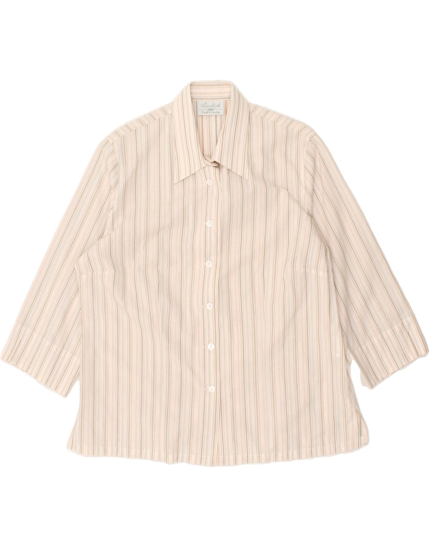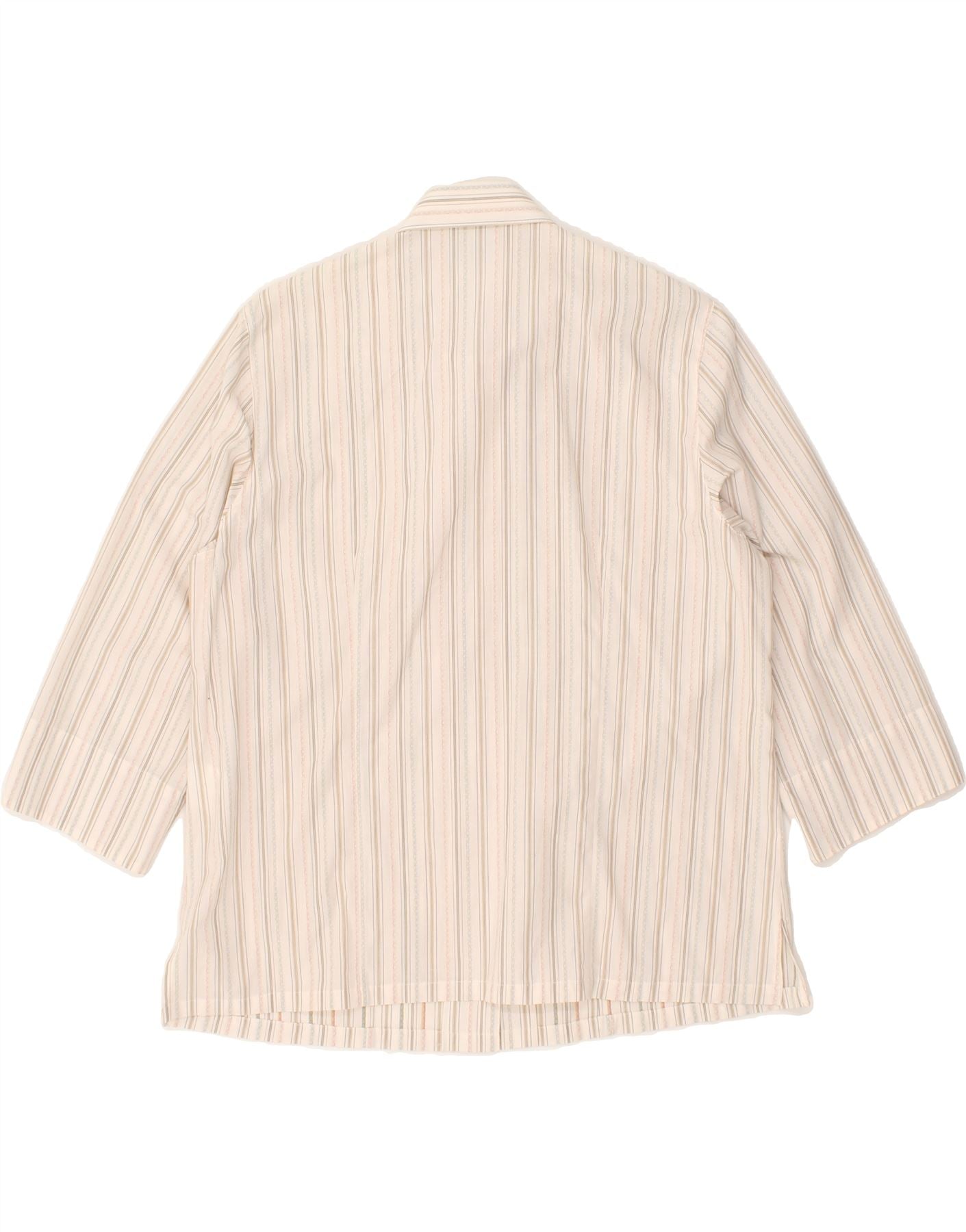 VINTAGE Womens 3/4 Sleeve Shirt EU 40 Medium Grey Striped Cotton