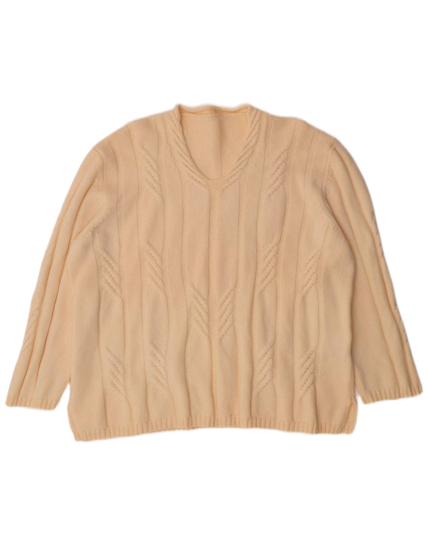 Damski sweter VINTAGE z rękawem 3/4 i dekoltem w szpic, UK 18 XL w kolorze złamanej bieli