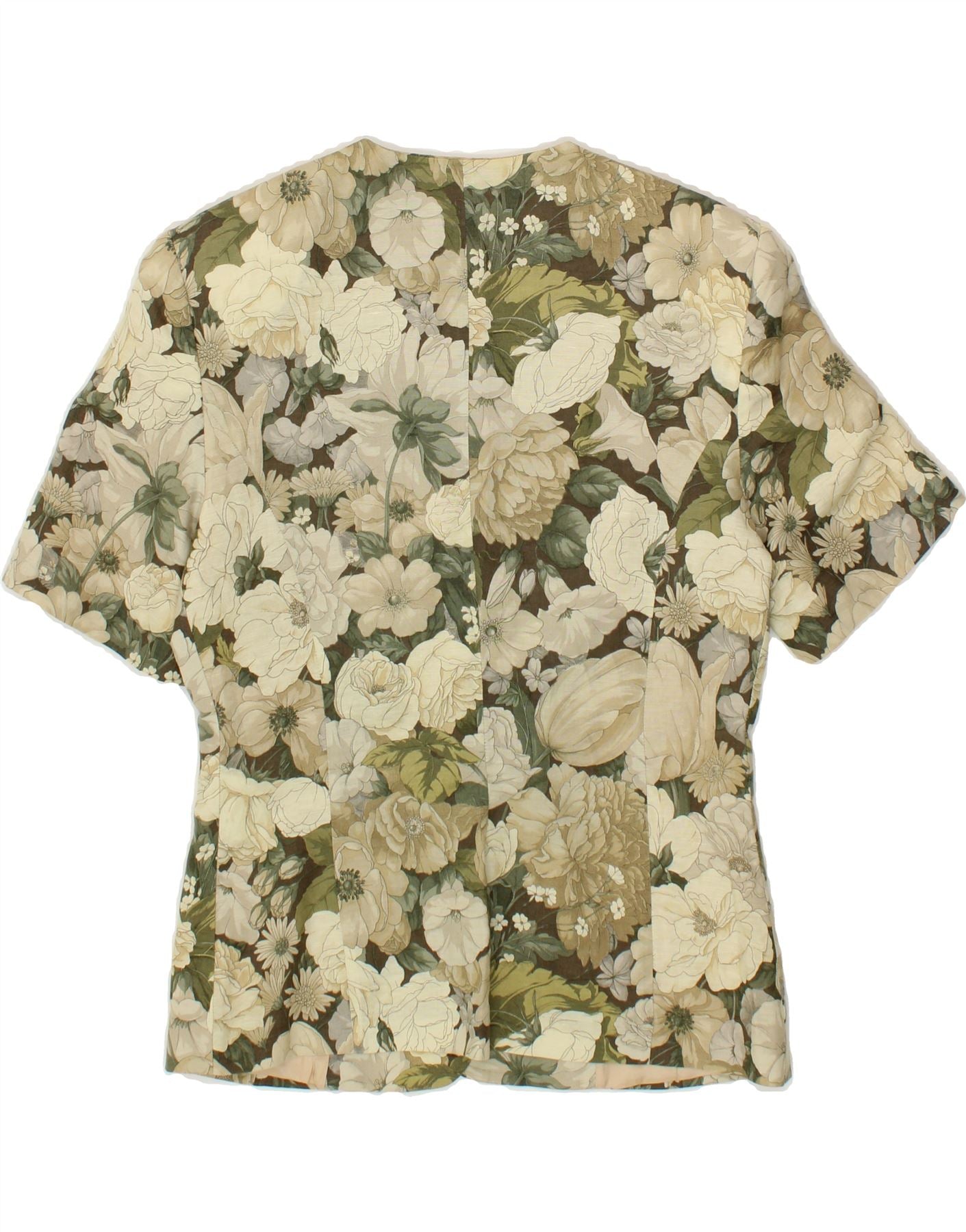 VINTAGE Womens 3 Button Blazer Jacket IT 40 Small Green Floral Linen