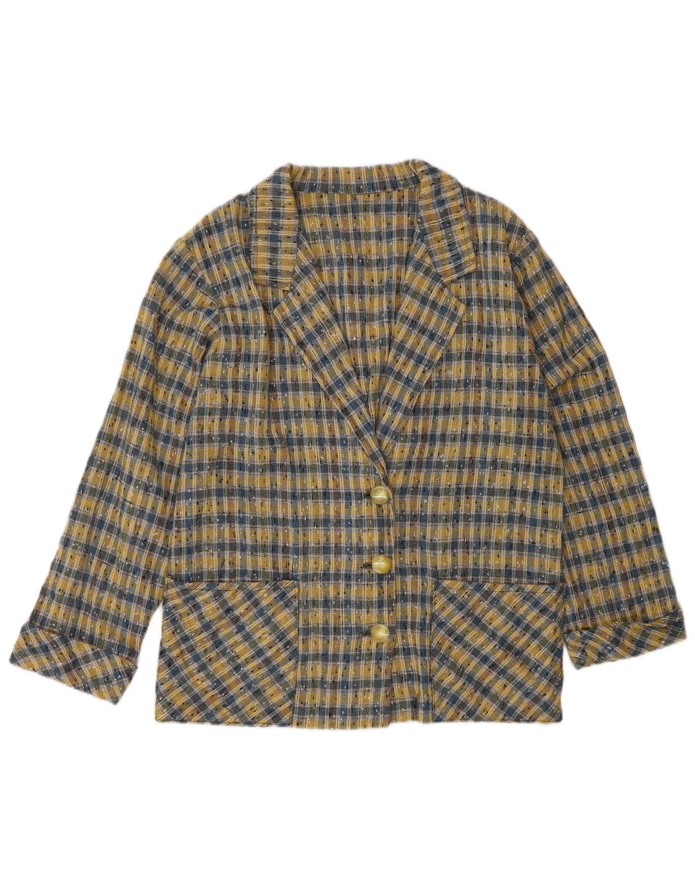 Damska marynarka VINTAGE zapinana na 3 guziki UK 14, średnia żółta kratka
