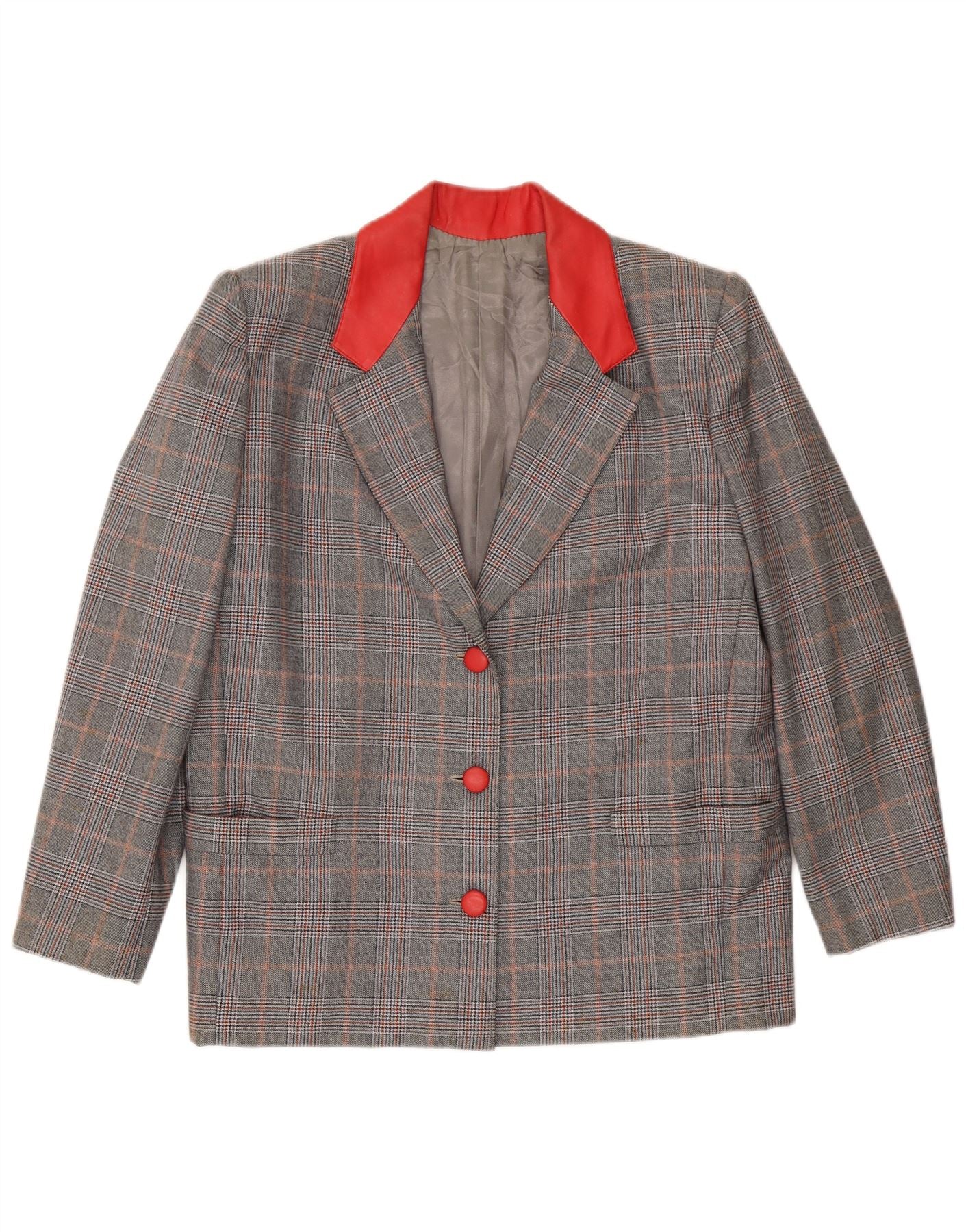 Home > Damskie > Odzież Depopa > Damska marynarka VINTAGE zapinana na 3 guziki UK 16, duża, szara krata