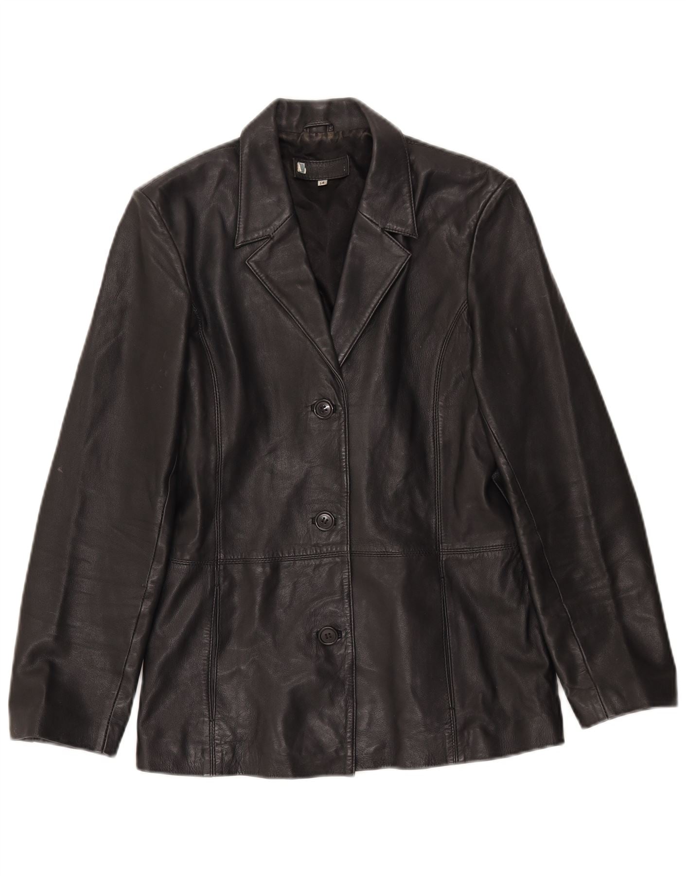 Vintage damska marynarka skórzana zapinana na 3 guziki UK 14, duża czarna skóra